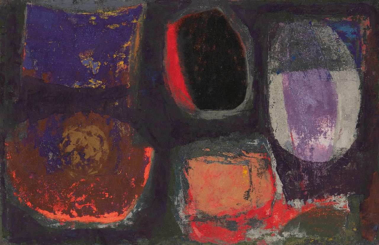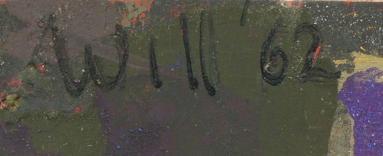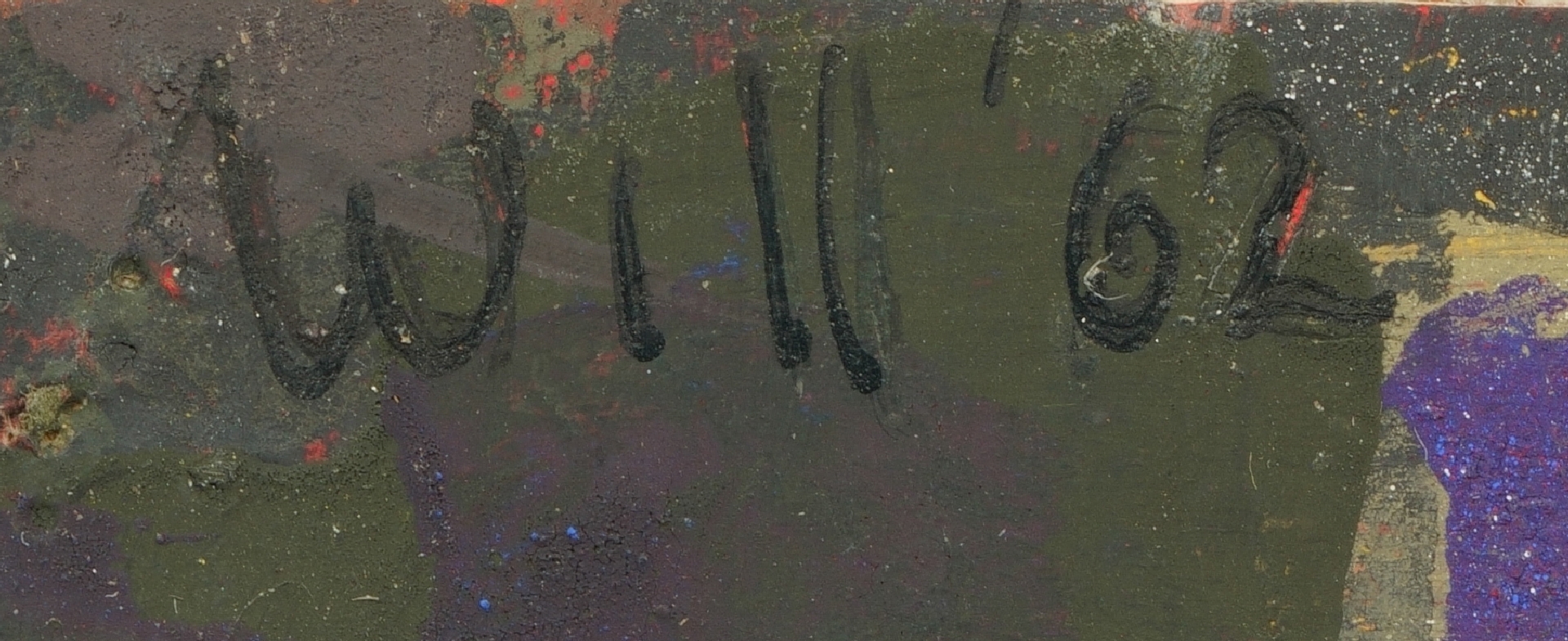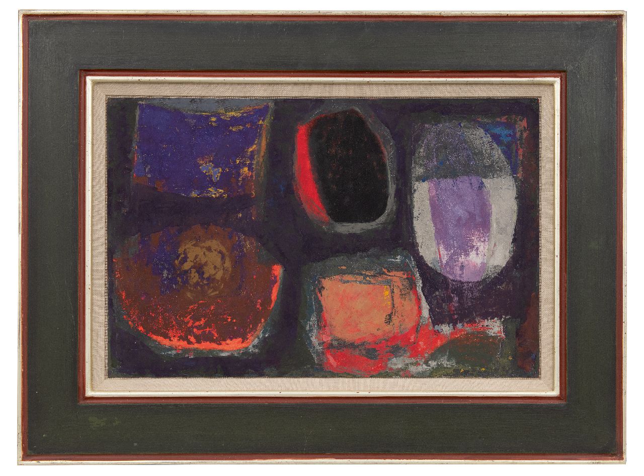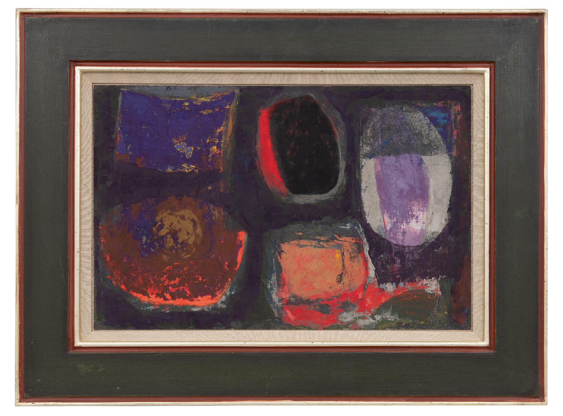 gouache op papier op board 32,0 x 52,0 cm, gesigneerd linksboven en gedateerd '62