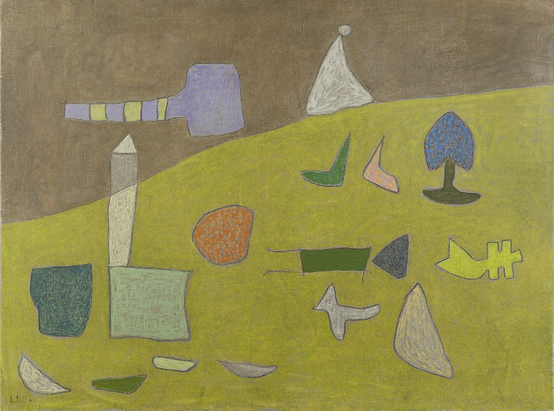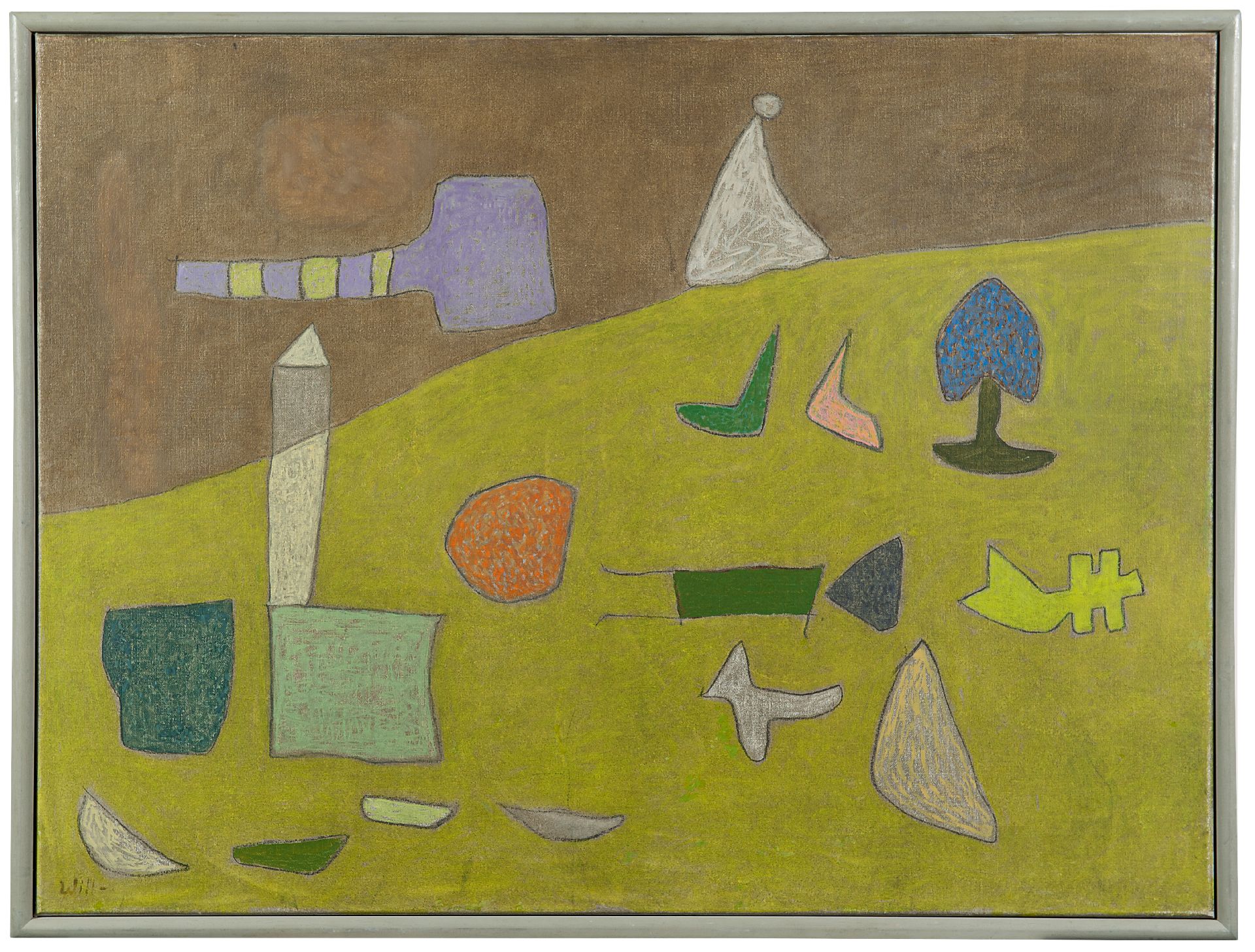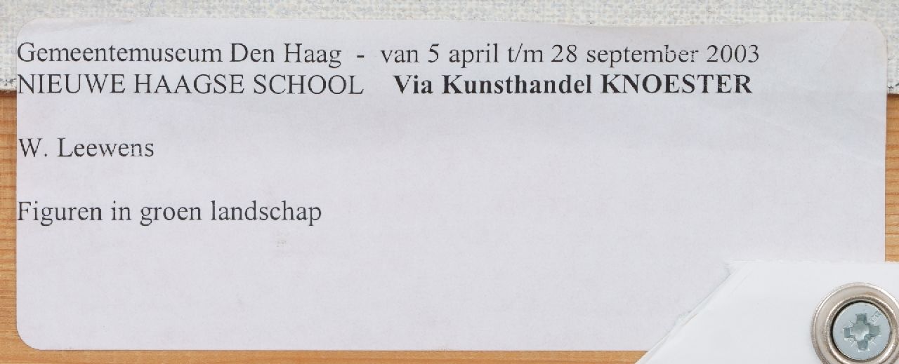Will Leewens kunstwerk • schilderij • te koop Figuren in groen landschap