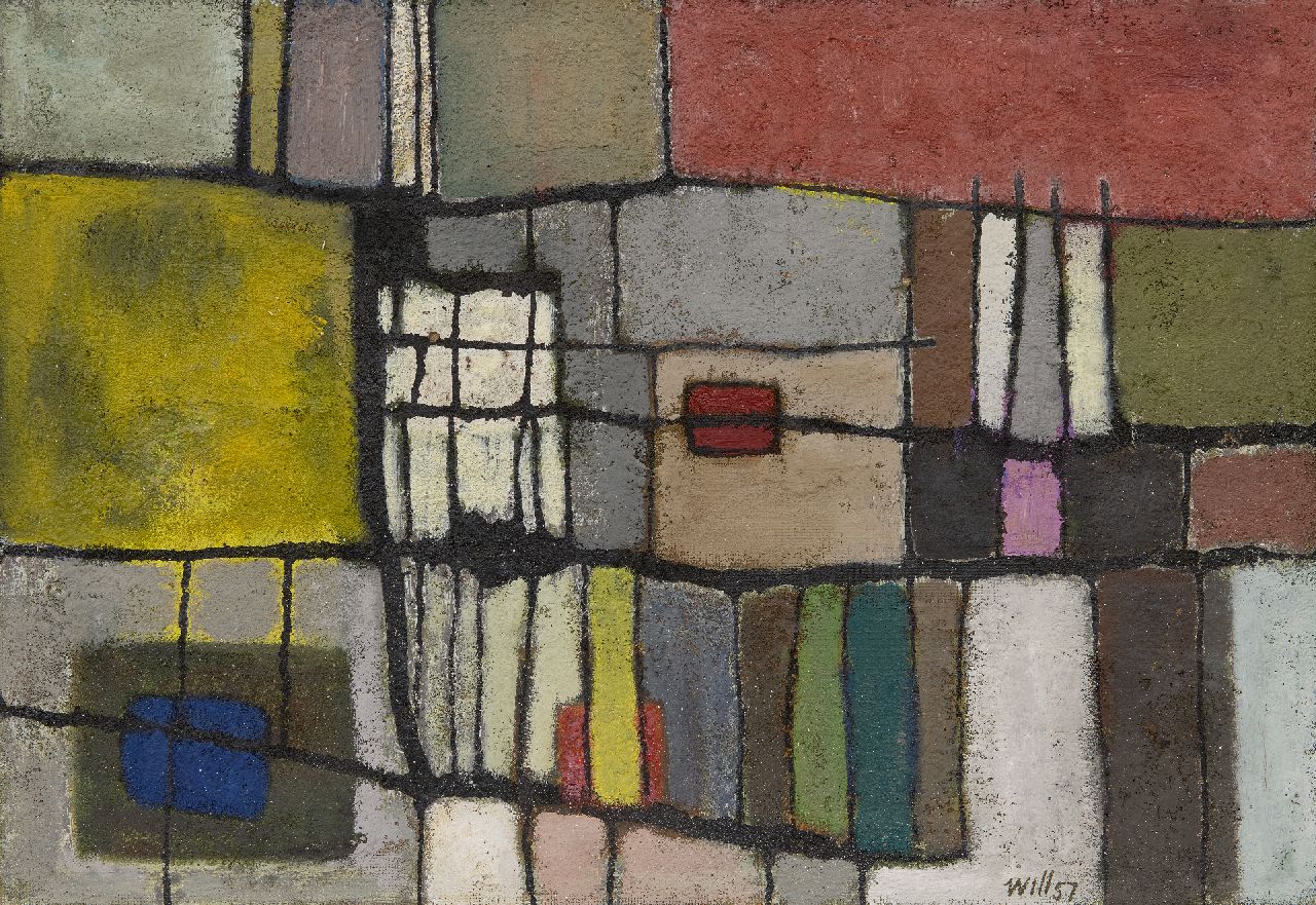 olieverf op board 46,8 x 67,3 cm, gesigneerd rechtsonder en gedateerd '57