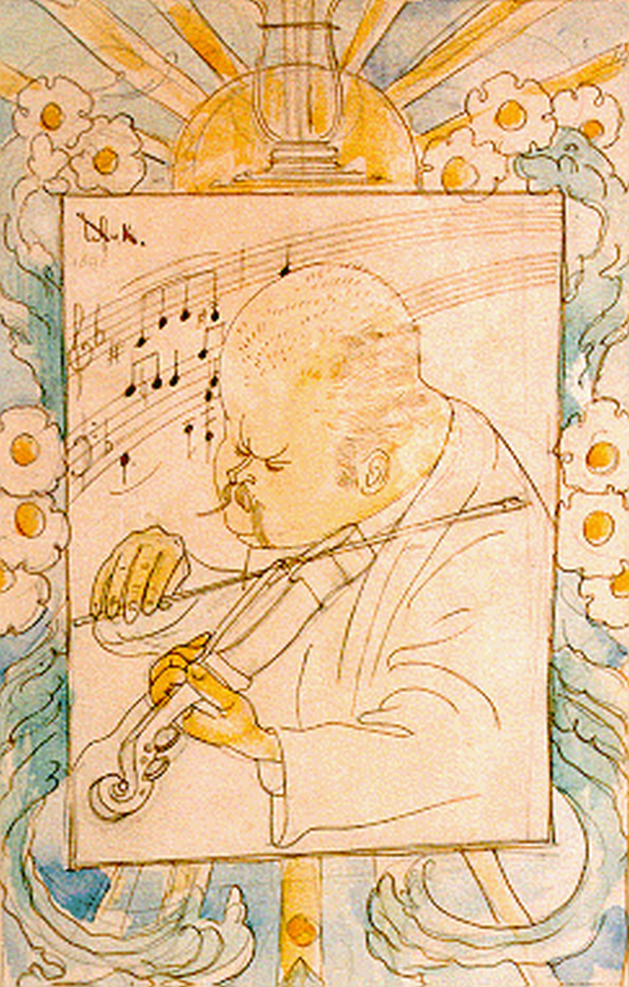 Willem Adriaan van Konijnenburg kunstwerk • aquarel • tekening • voorheen te koop Violist