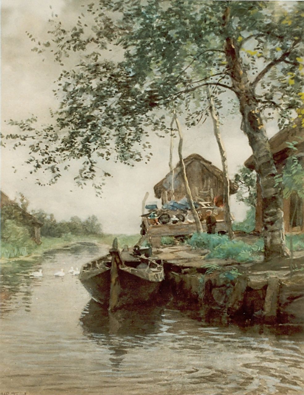 Willem Bastiaan Tholen kunstwerk • aquarel • tekening • voorheen te koop Boerderij aan een vaart