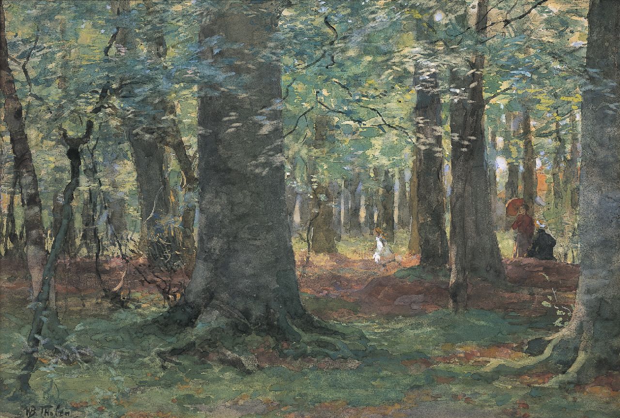 Willem Bastiaan Tholen kunstwerk • aquarel • tekening • voorheen te koop Zomerdag in het bos