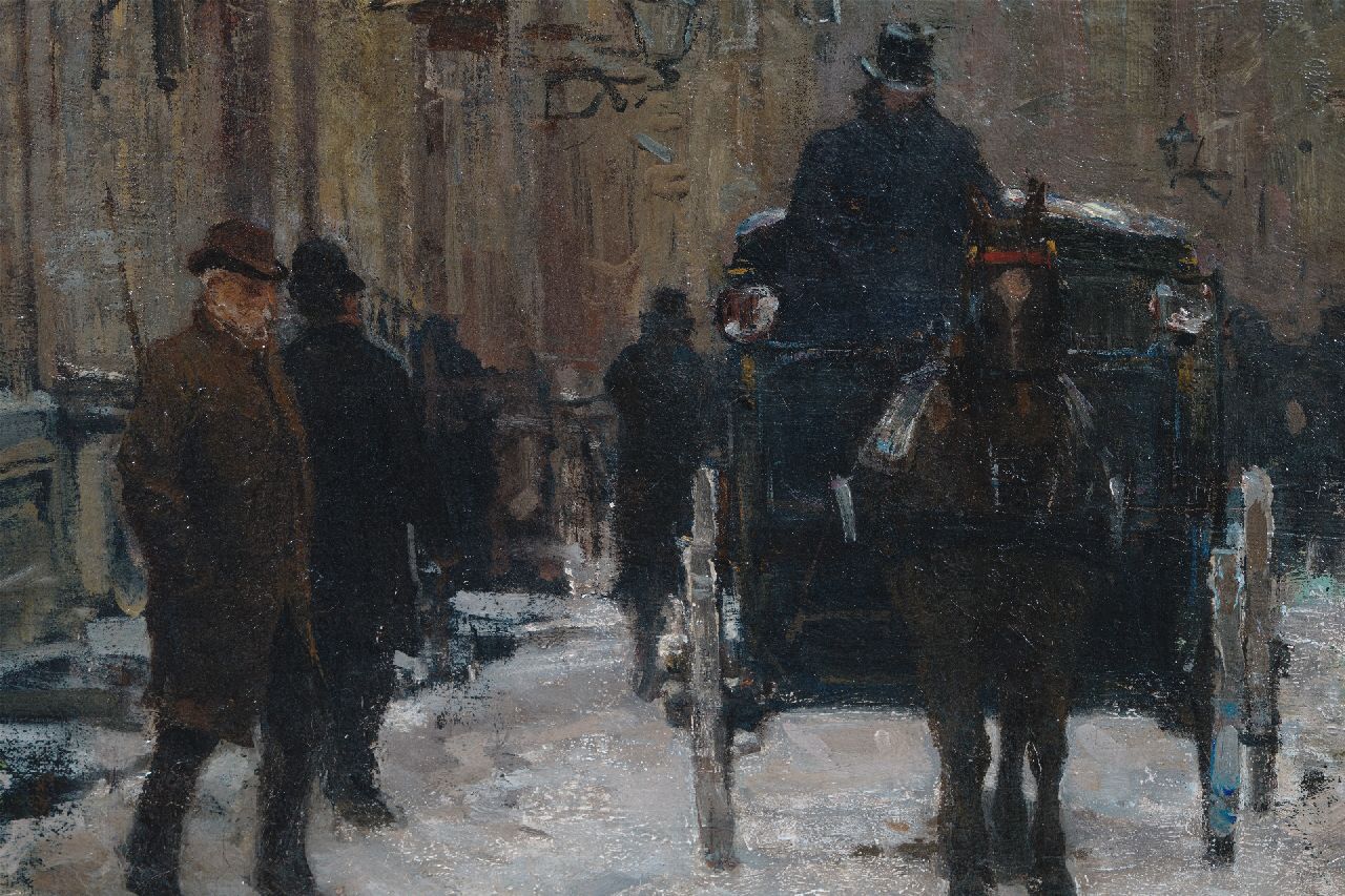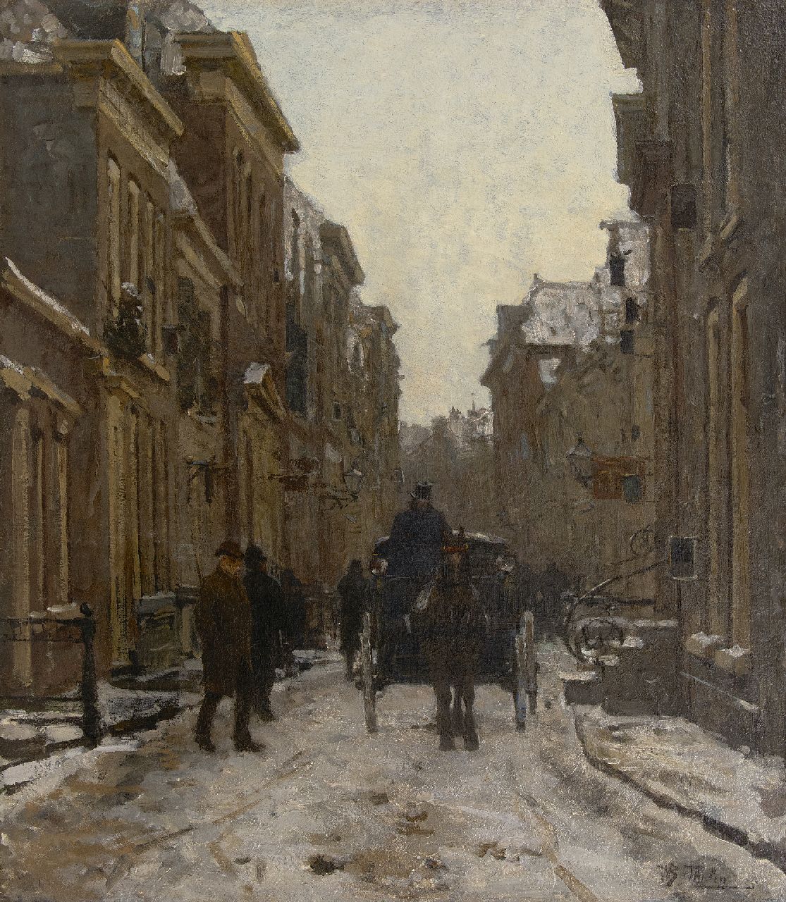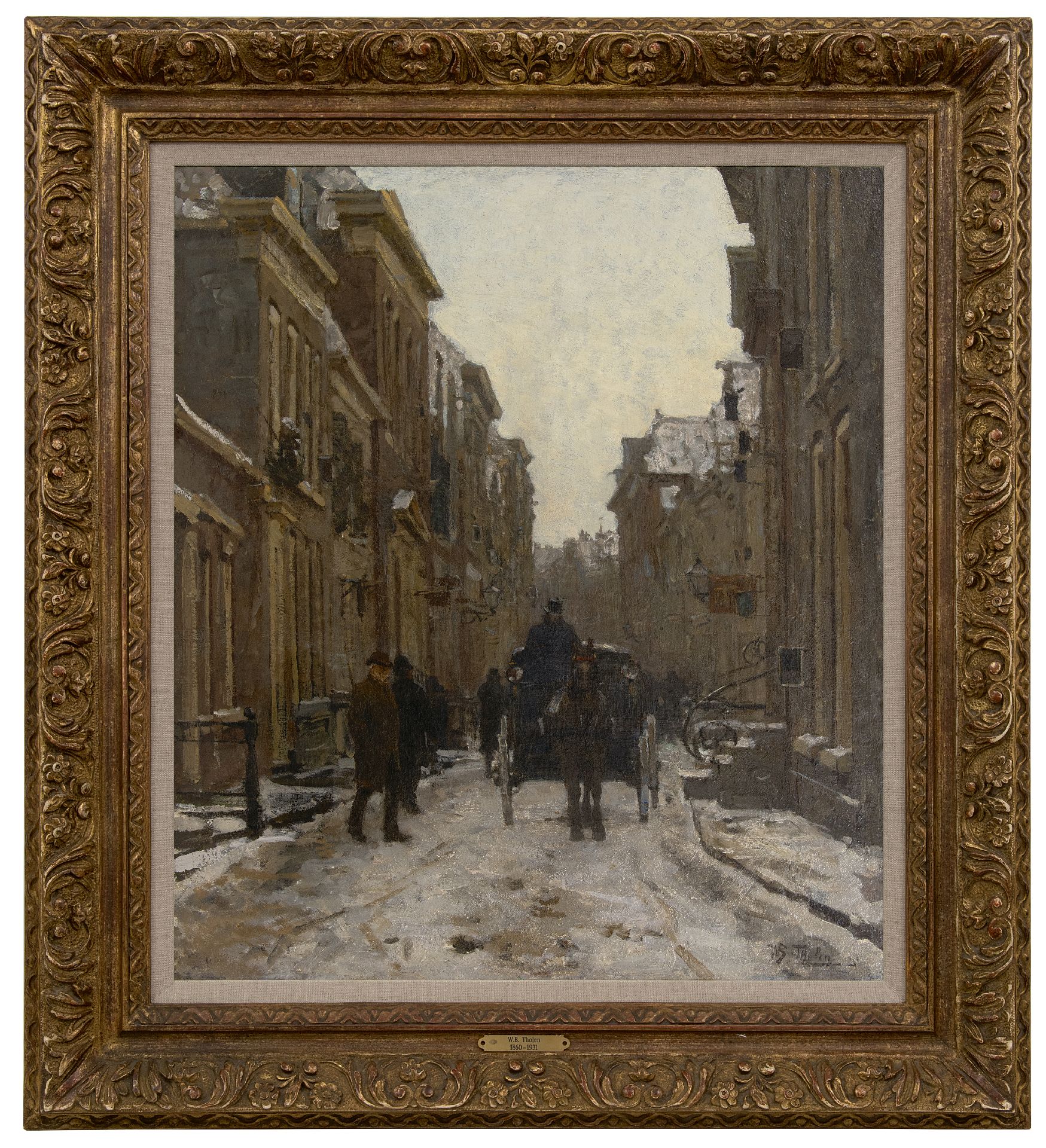 Willem Bastiaan Tholen kunstwerk • schilderij • voorheen te koop Koets in besneeuwde straat in Voorburg