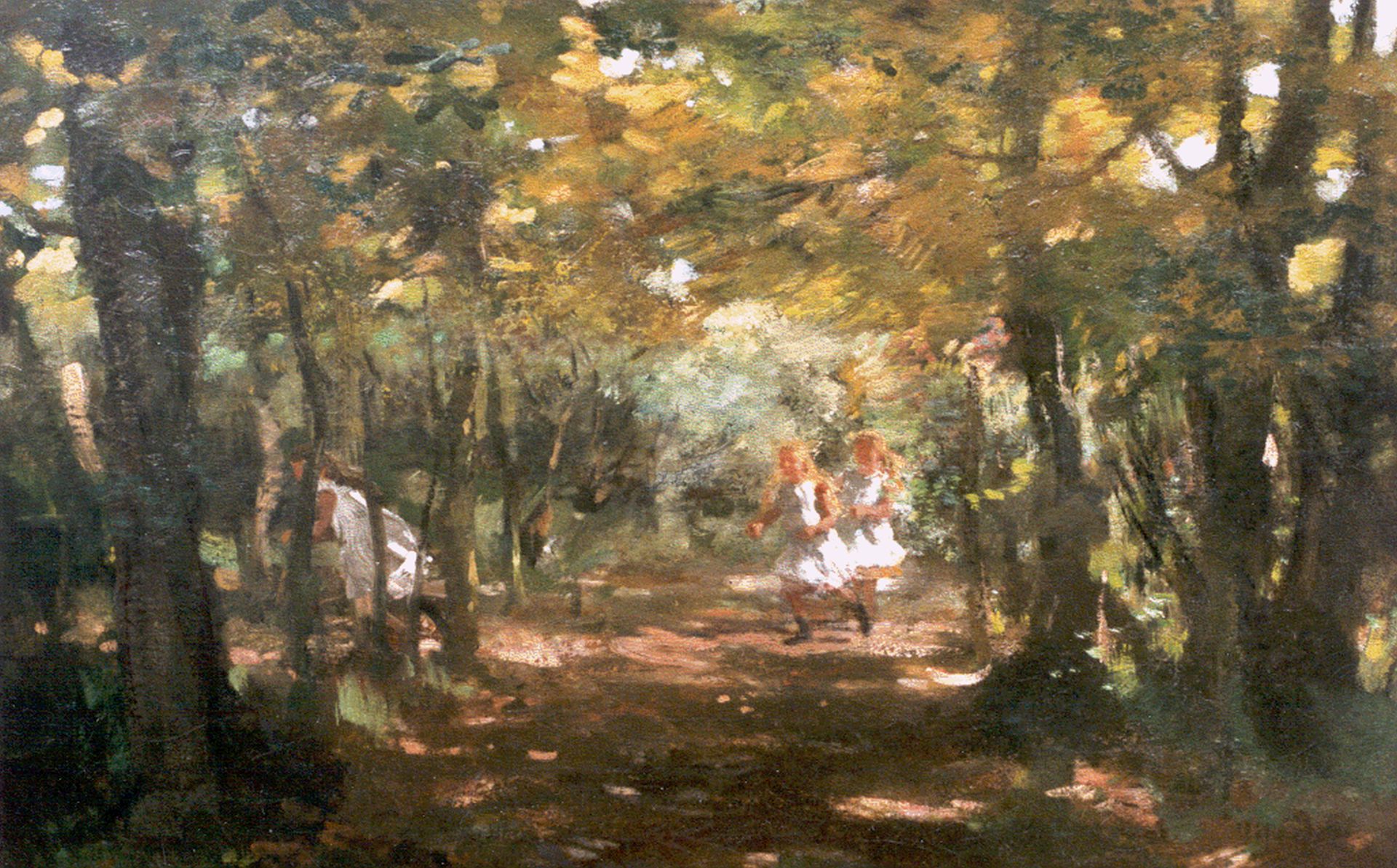 Willem Bastiaan Tholen kunstwerk • schilderij • voorheen te koop Krijgertje spelen in het bos