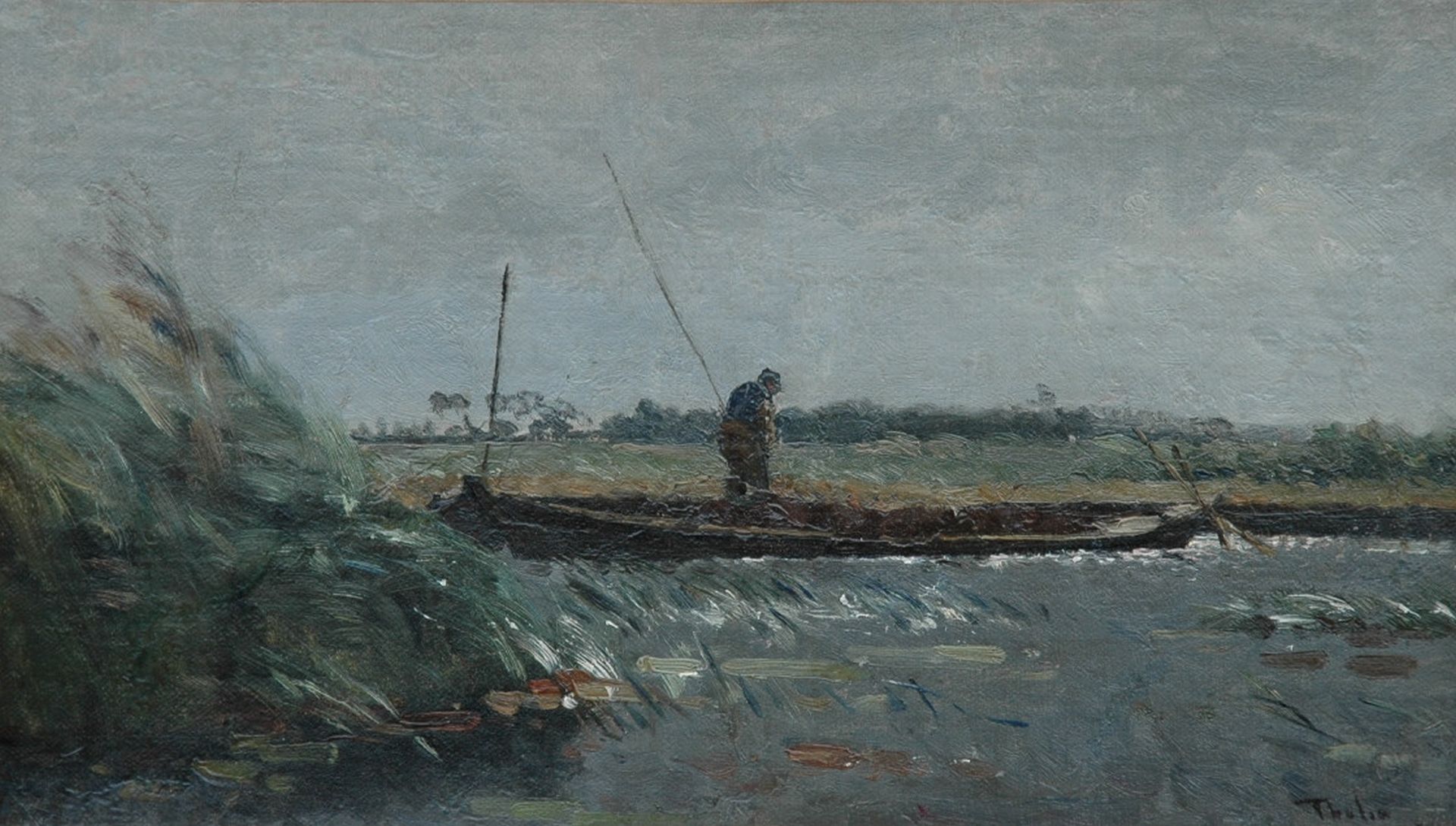 Willem Bastiaan Tholen kunstwerk • schilderij • voorheen te koop Punter op een poldervaart