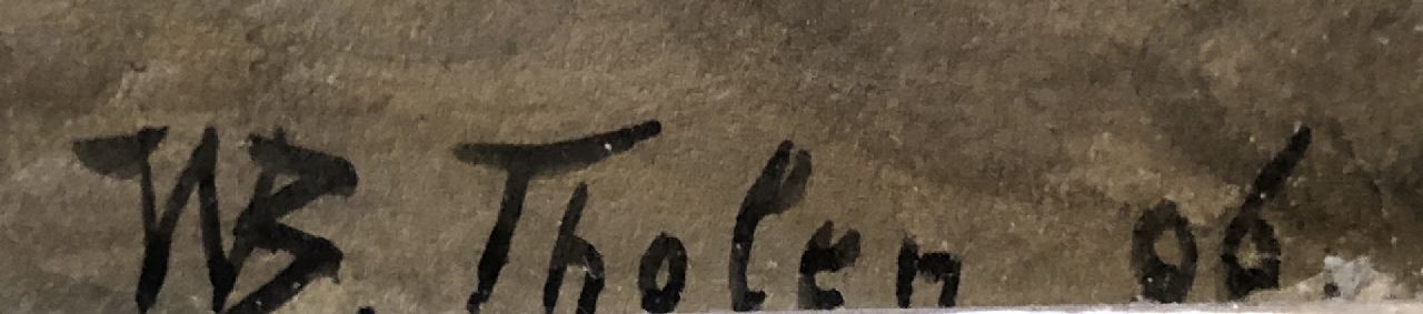 Willem Bastiaan Tholen was een leerling van onder anderen Paul Joseph Constantin Gabriel, wiens invloed zichtbaar is in de vroege landschappen die hij in de omgeving van Giethoorn en Kampen maakte. Daarna schilderde hij vooral portretten, bos-, stads- en strandgezichten in een losse schildertrant en kleurig helder palet. Na 1895 maakte Tholen met zijn Lemsteraak 'Eudia' zwerftochten over de Zuiderzee, Zeeuwse wateren en Hollandse rivieren. Uit die tijd stammen talloze haven- en watergezichten.