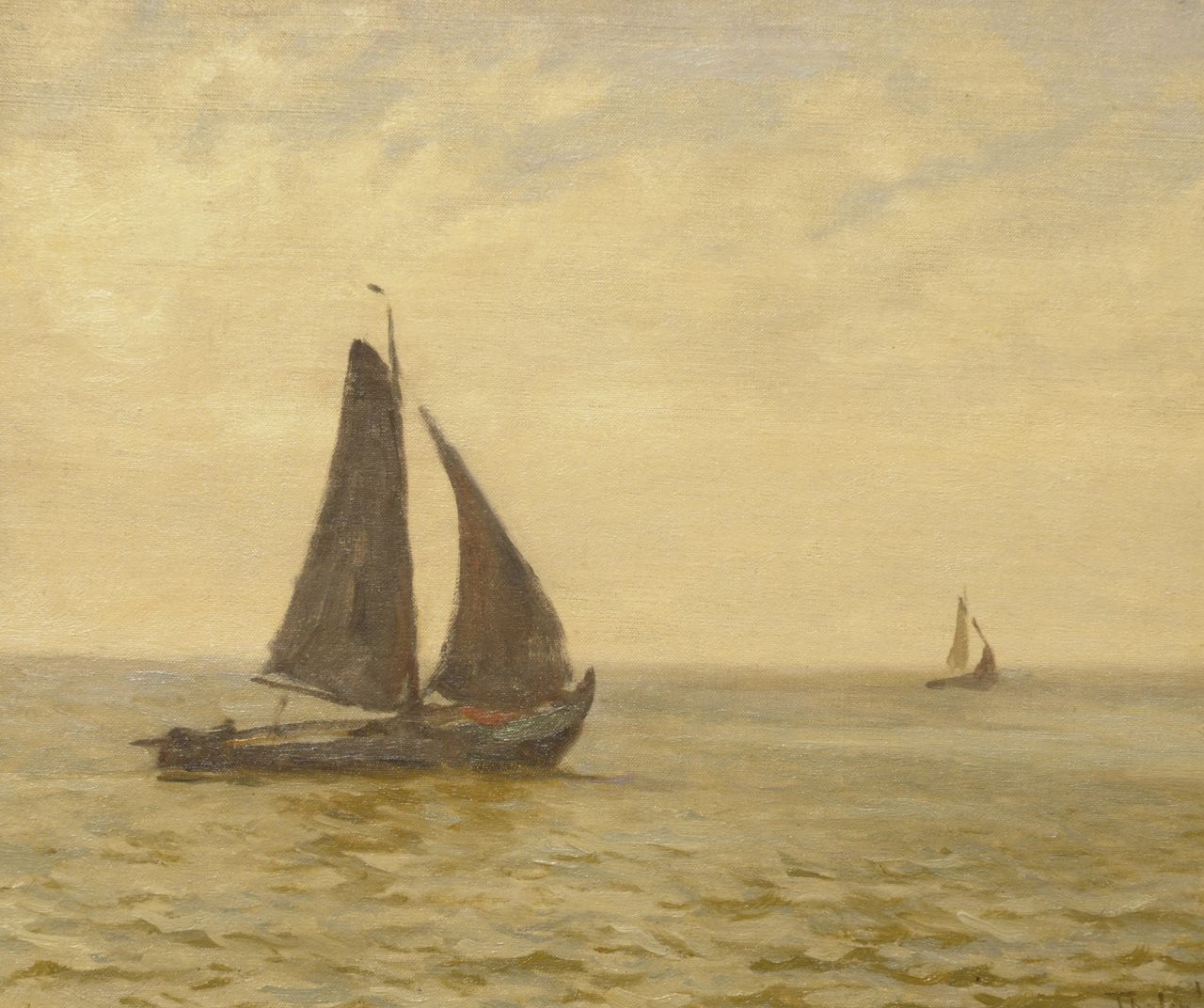 Willem Bastiaan Tholen kunstwerk • schilderij • voorheen te koop Vissersboten op zee