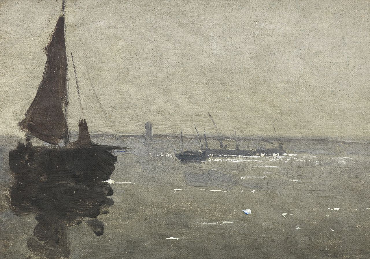 Willem Bastiaan Tholen kunstwerk • schilderij • voorheen te koop Vroege ochtend op het water
