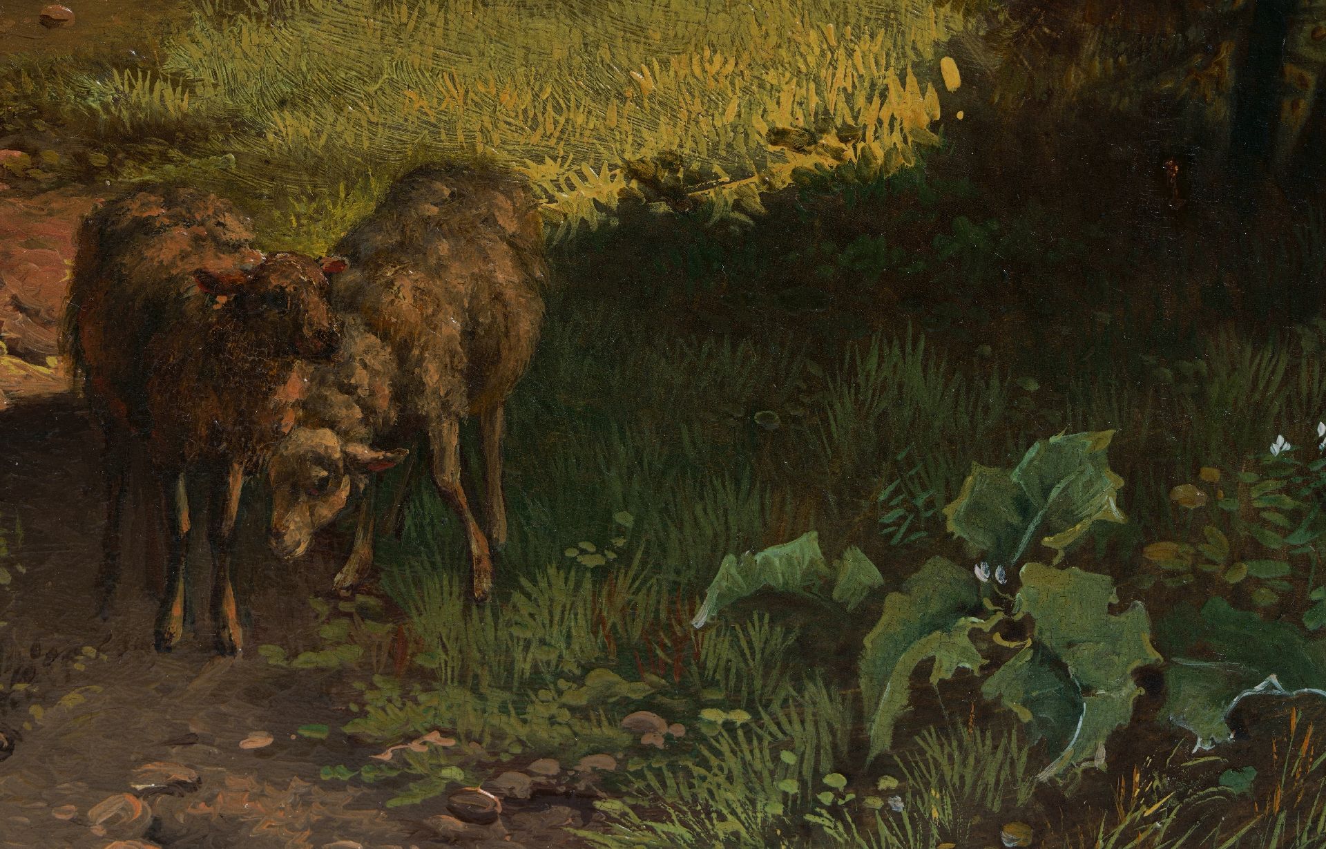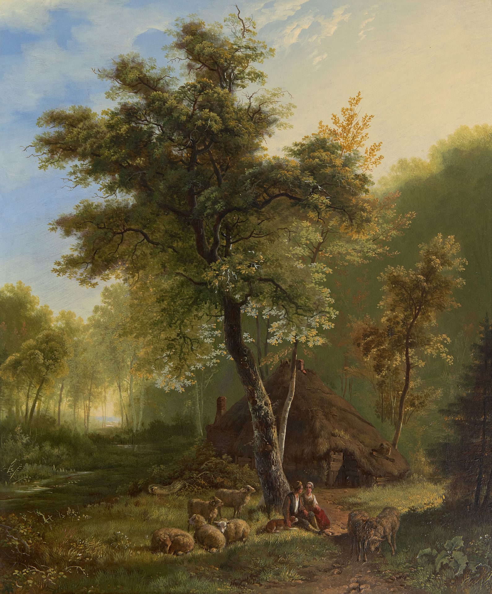 Willem Bodeman kunstwerk • schilderij • voorheen te koop Herderspaar met schapen bij een hut