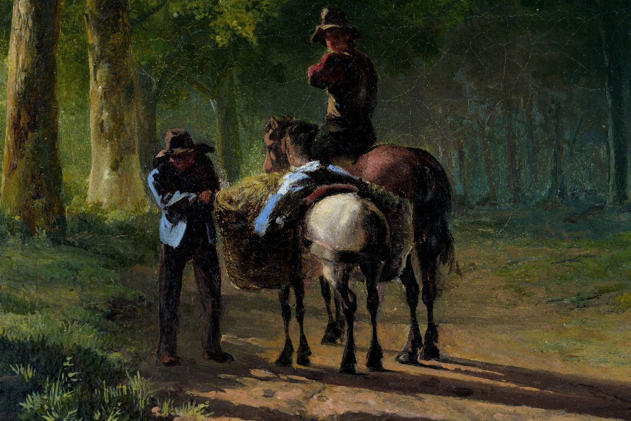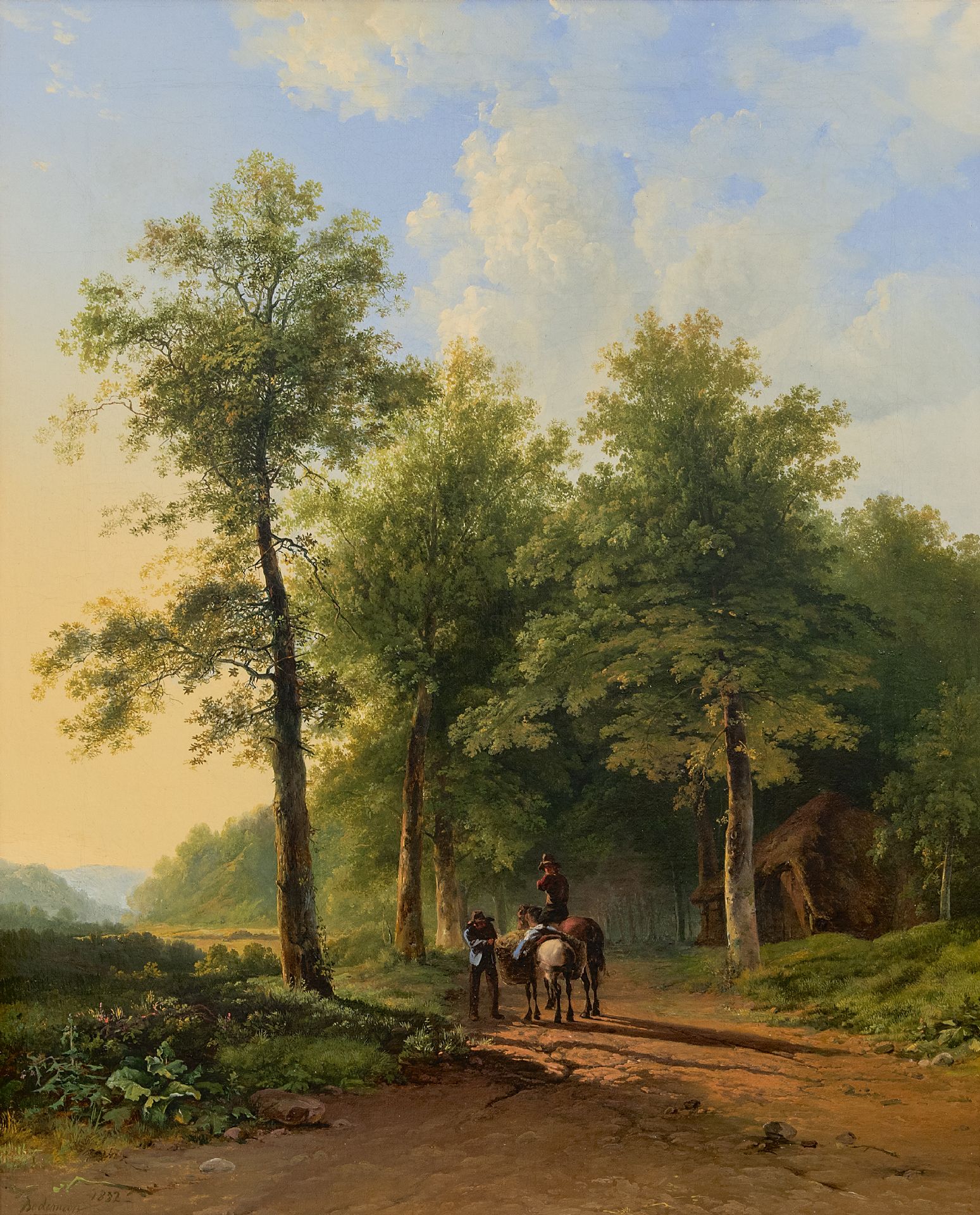 Willem Bodeman kunstwerk • schilderij • te koop Landschap met landvolk en paarden op een late zomerdag