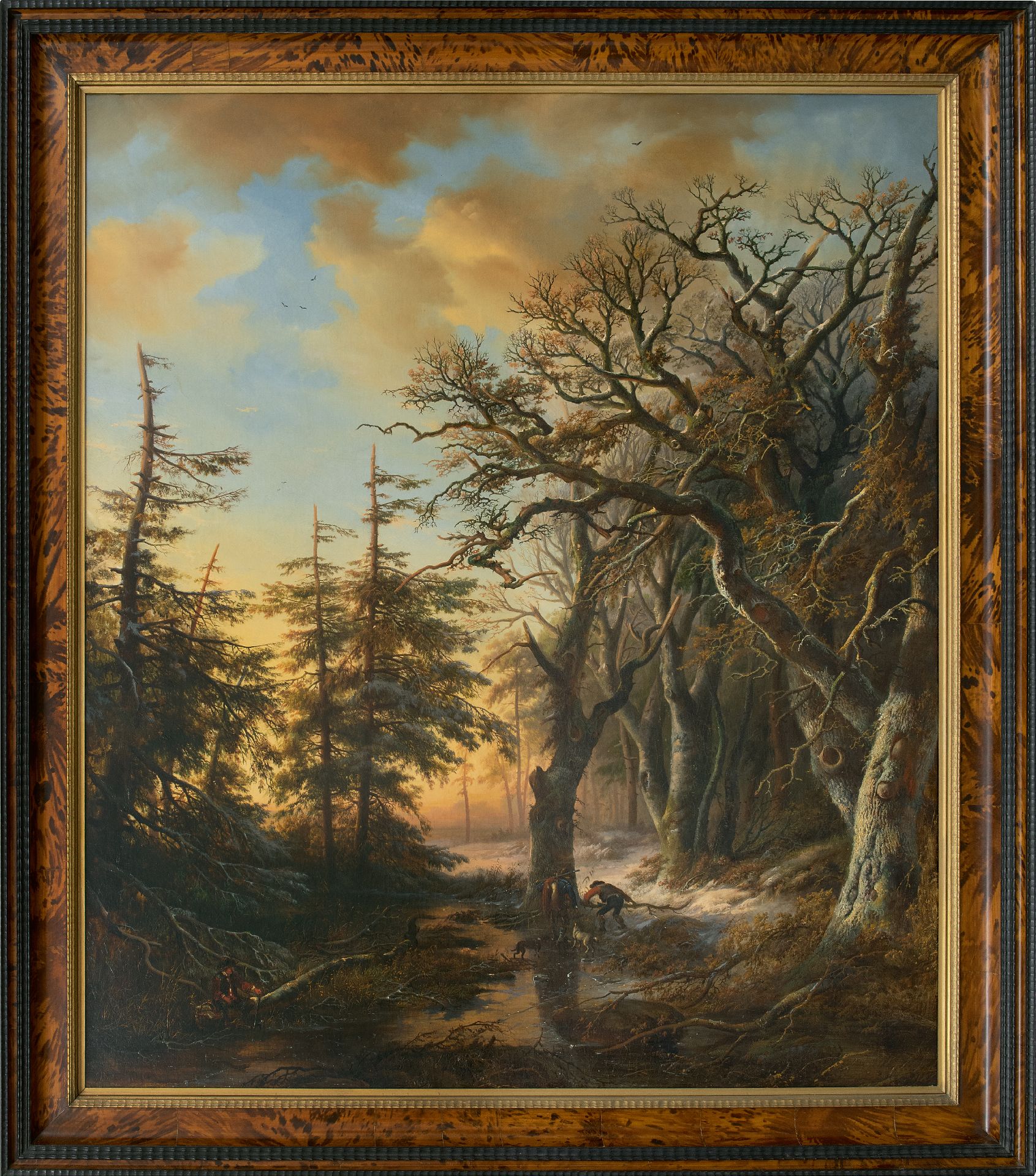 Willem Bodeman kunstwerk • schilderij • voorheen te koop Twee jagers bij een bevroren beek in het bos