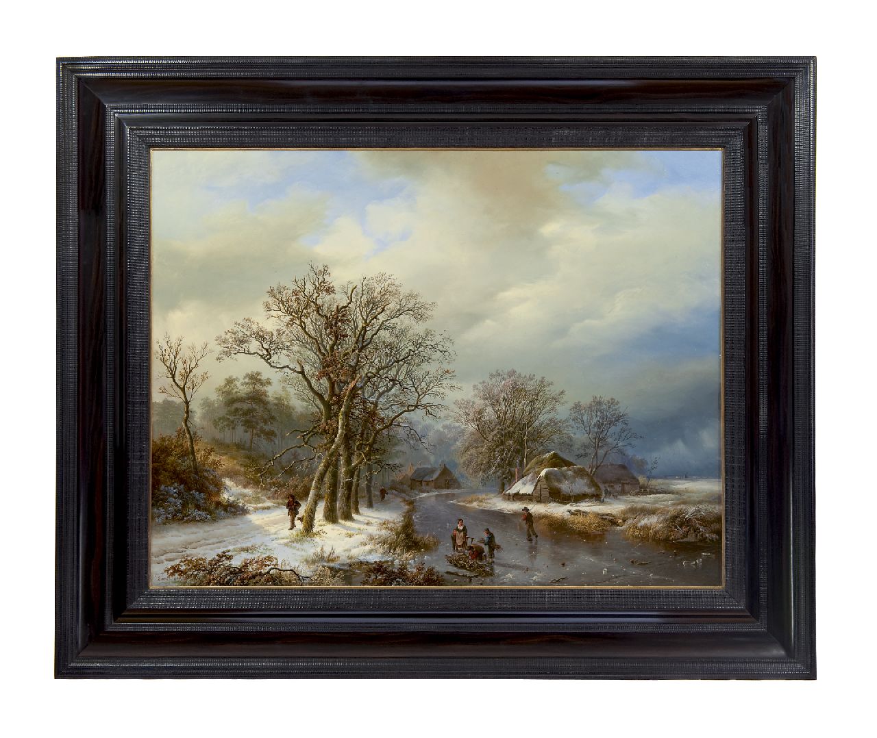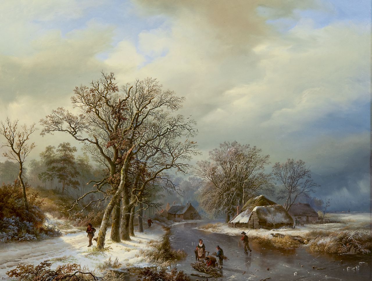 Willem Bodeman kunstwerk • schilderij • voorheen te koop Winterlandschap met schaatsers en houtsprokkelaars
