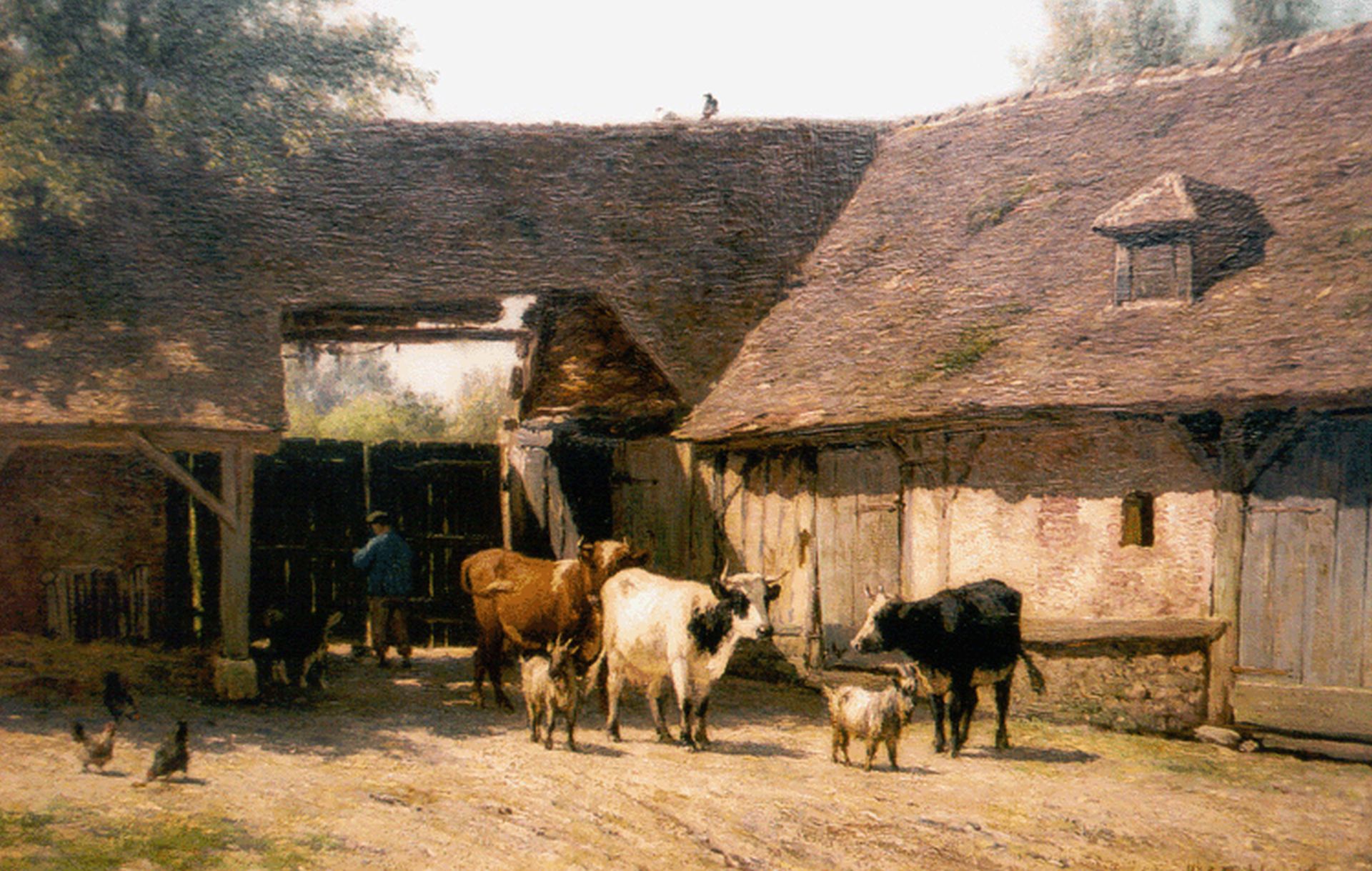 Willem Carel Nakken kunstwerk • schilderij • voorheen te koop Boerenhoeve met vee
