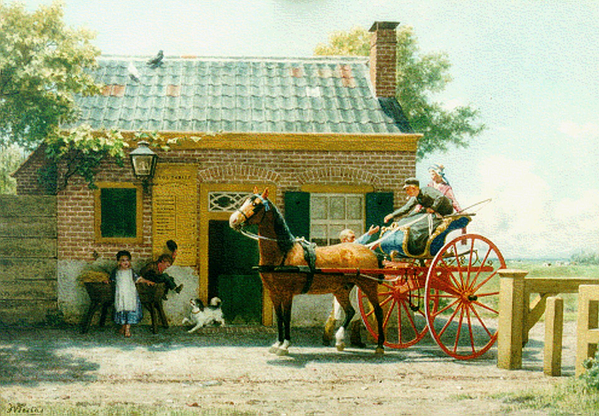 Famars Testas W. de | Willem de Famars Testas, Hollandse boerensjees en tolhek, aquarel op papier 38,0 x 54,0 cm, gesigneerd linksonder en verso gedateerd 1877