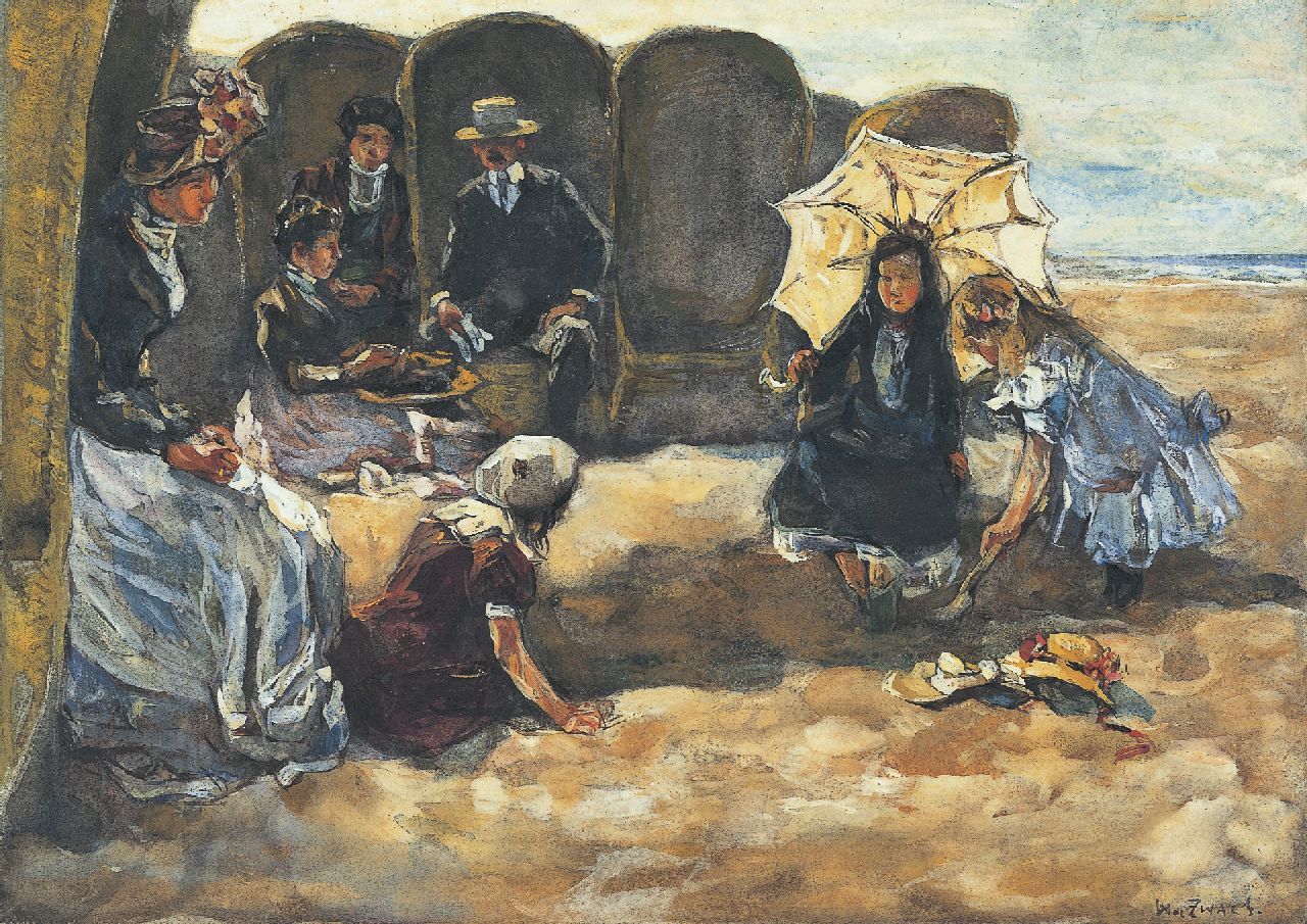 Zwart W.H.P.J. de | Wilhelmus Hendrikus Petrus Johannes 'Willem' de Zwart, Aan het strand, aquarel op papier 25,3 x 34,9 cm, gesigneerd rechtsonder en te dateren ca. 1905