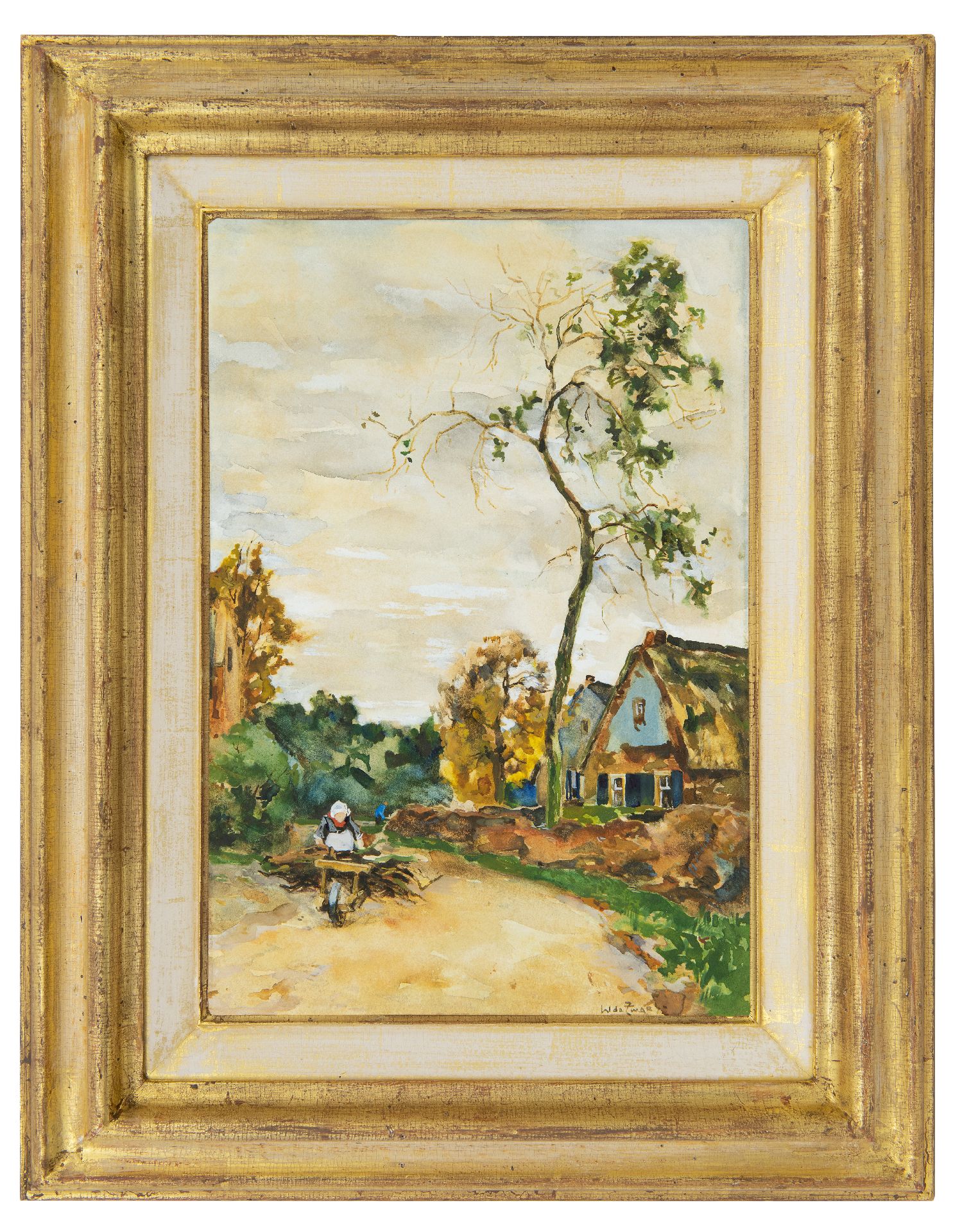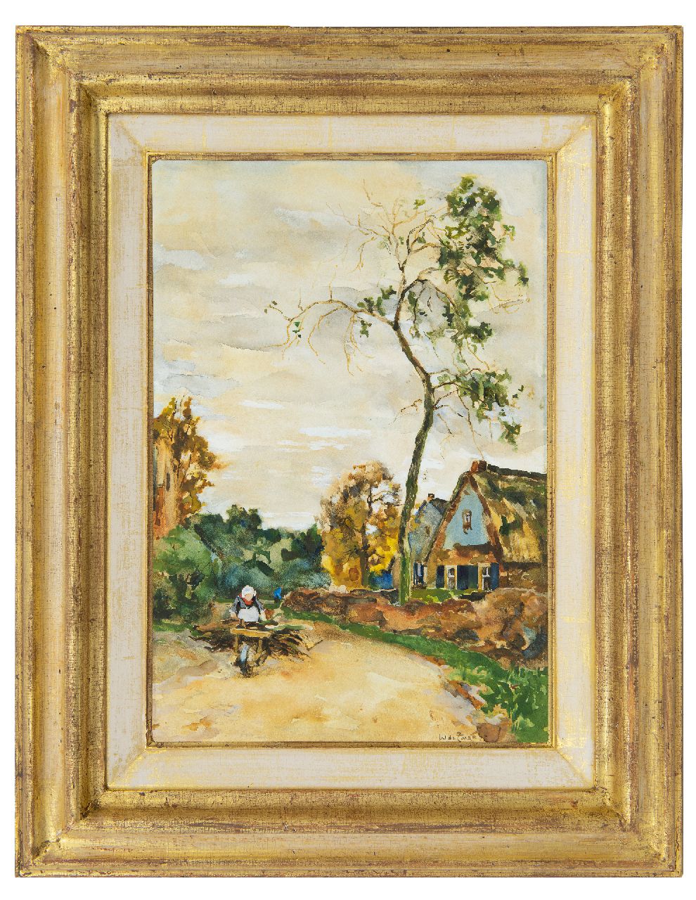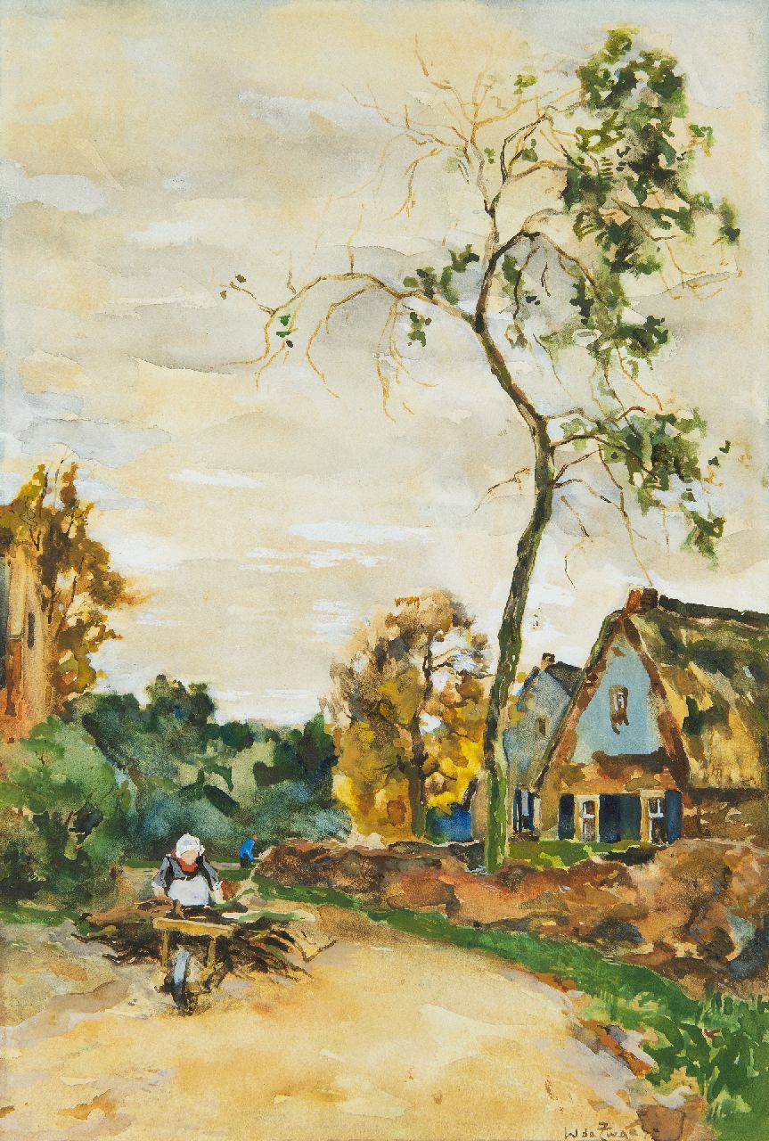 Willem de Zwart kunstwerk • aquarel • tekening • te koop Boerin met kruiwagen