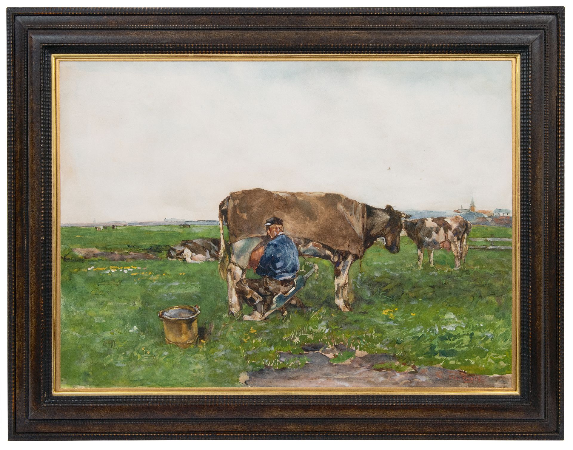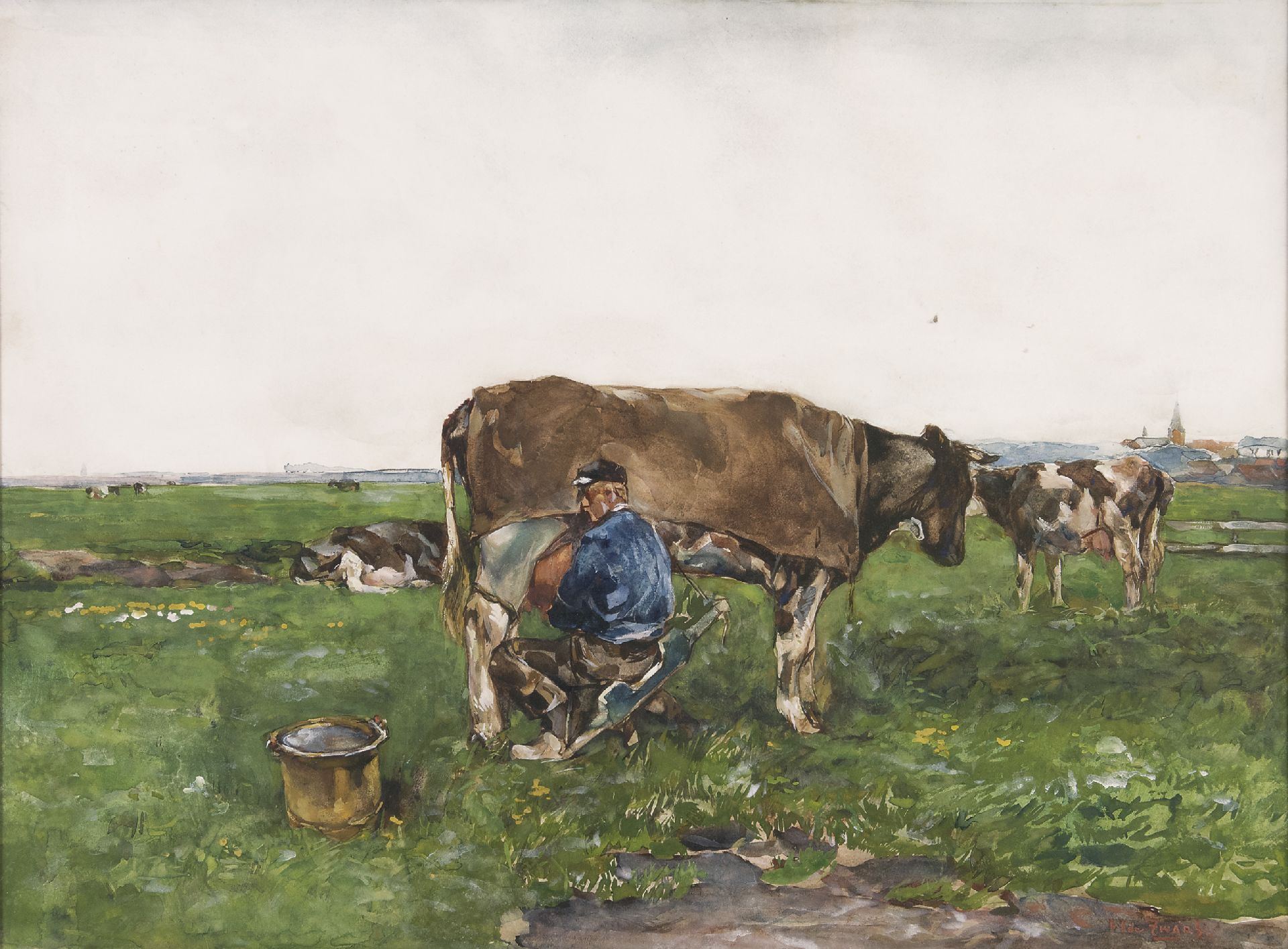 Willem de Zwart kunstwerk • aquarel • tekening • voorheen te koop Melktijd