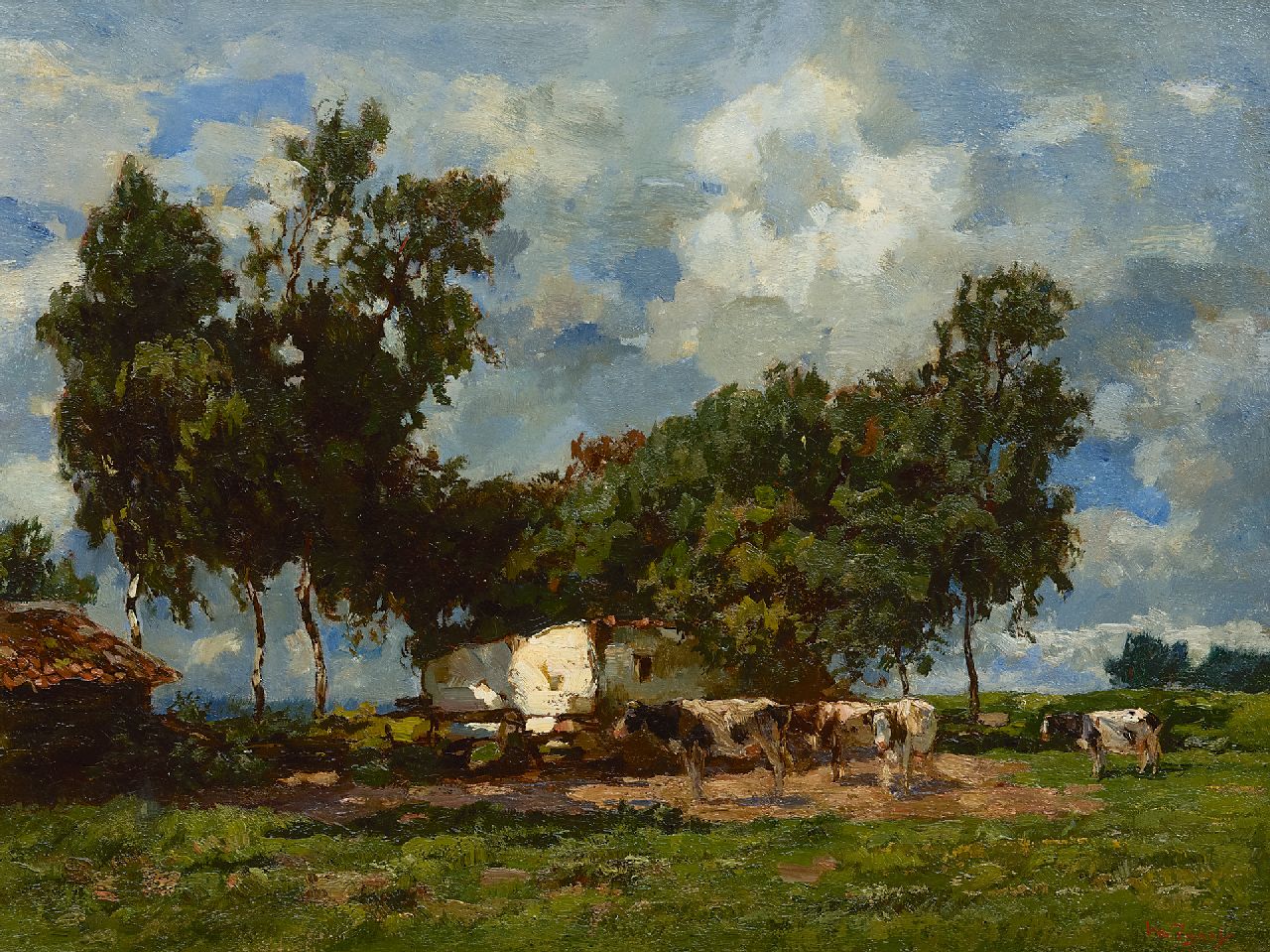 Willem de Zwart kunstwerk • schilderij • te koop Koeien bij een boerderij