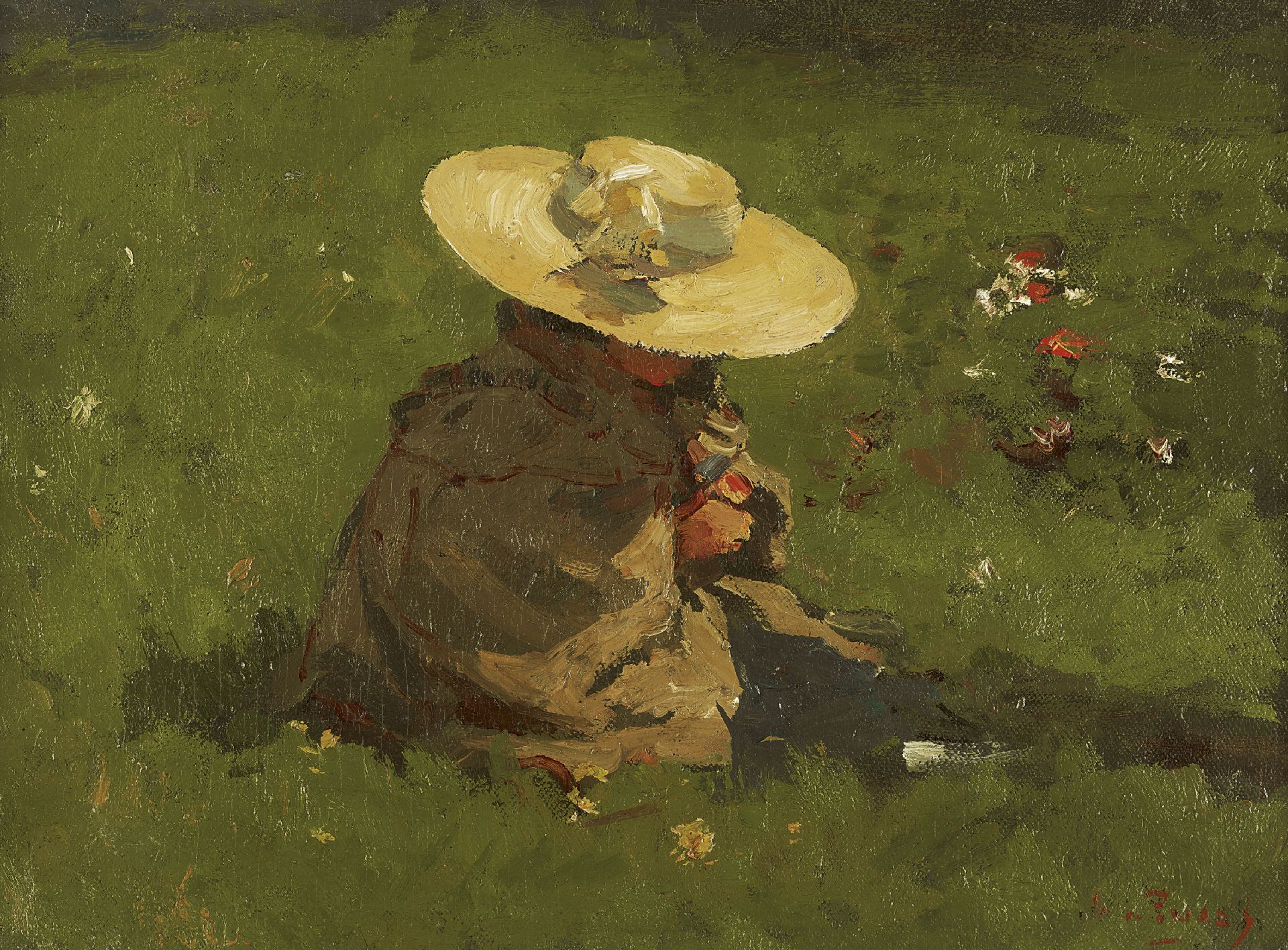 olieverf op doek op paneel 27,0 x 35,7 cm, gesigneerd rechtsonder en te dateren ca. 1895