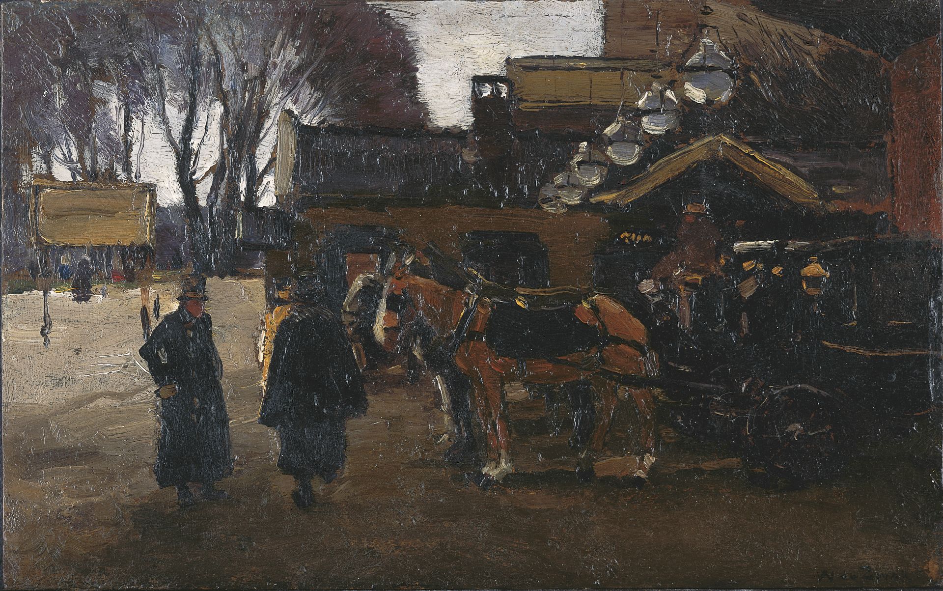Willem de Zwart kunstwerk • schilderij • voorheen te koop Rijtuigen voor Station Staatsspoor, Den Haag