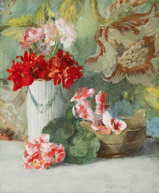 Willem Elisa Roelofs jr. | Dahlia's, aquarel op papier, 78,4 x 56,8 cm, gesigneerd r.o.