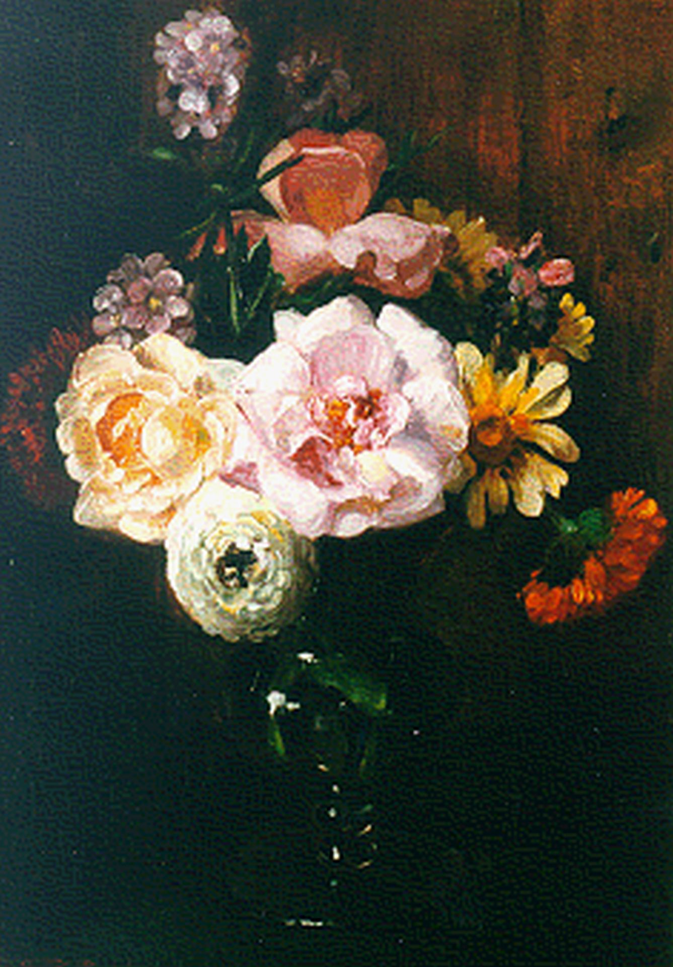 Willem Elisa Roelofs jr. kunstwerk • schilderij • voorheen te koop Zomerboeket in glazen vaas