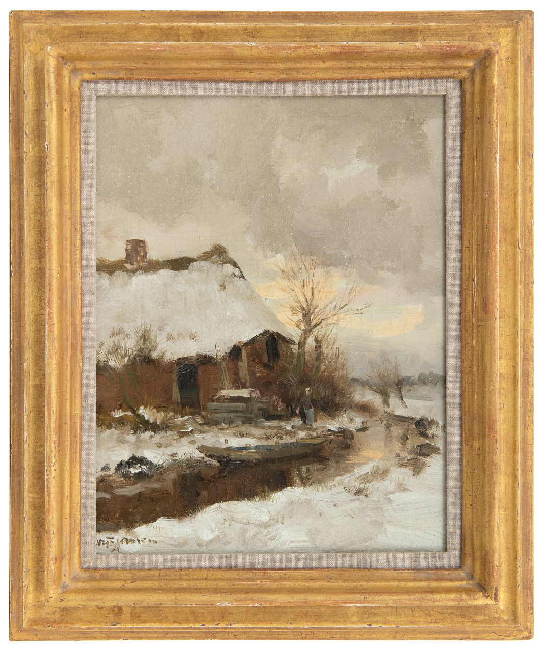 Willem George Frederik Jansen kunstwerk • schilderij • voorheen te koop Boerderijtje in de sneeuw