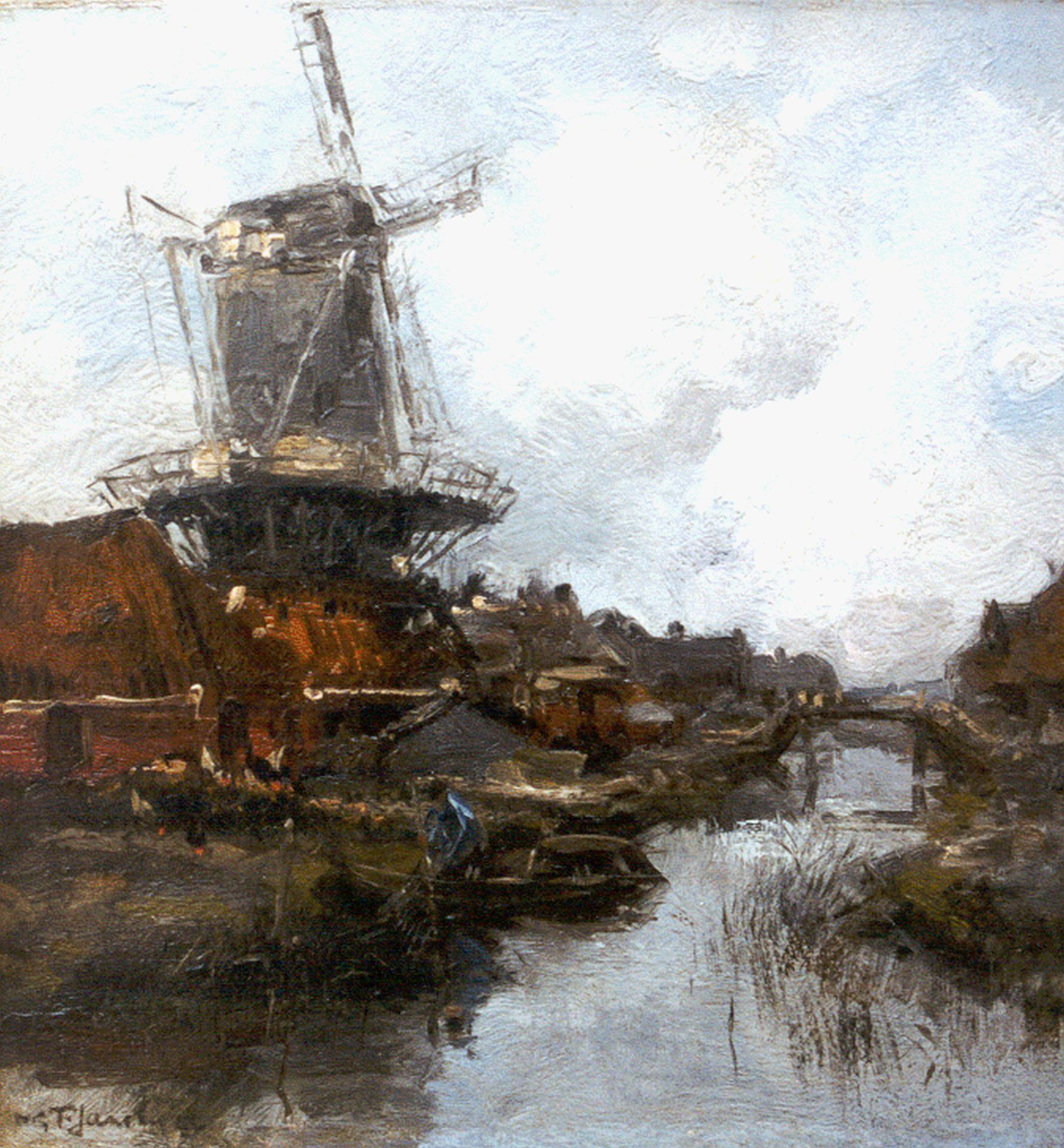 Willem George Frederik Jansen kunstwerk • schilderij • voorheen te koop Houtzaagmolen aan een vaart