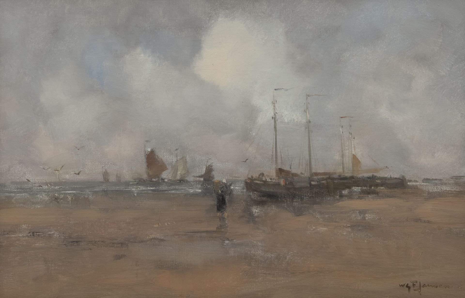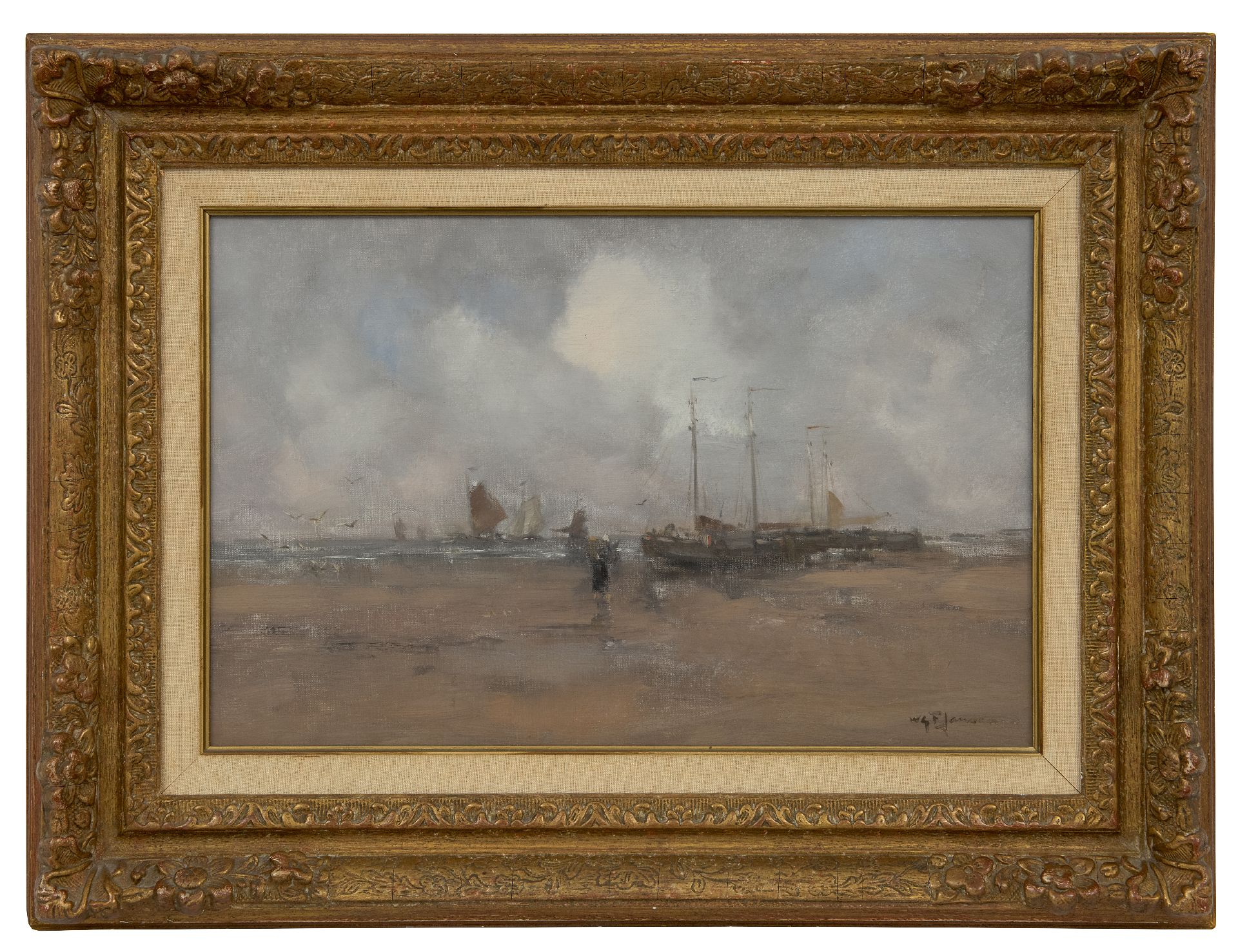 Willem George Frederik Jansen kunstwerk • schilderij • te koop Strandgezicht met vissersvrouw en pinken