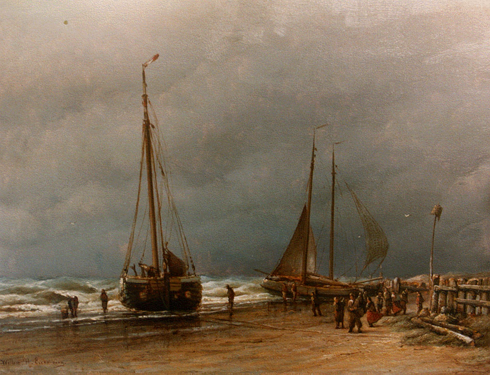 Willem Hendrik Eickelberg kunstwerk • schilderij • voorheen te koop Platbodems op het strand