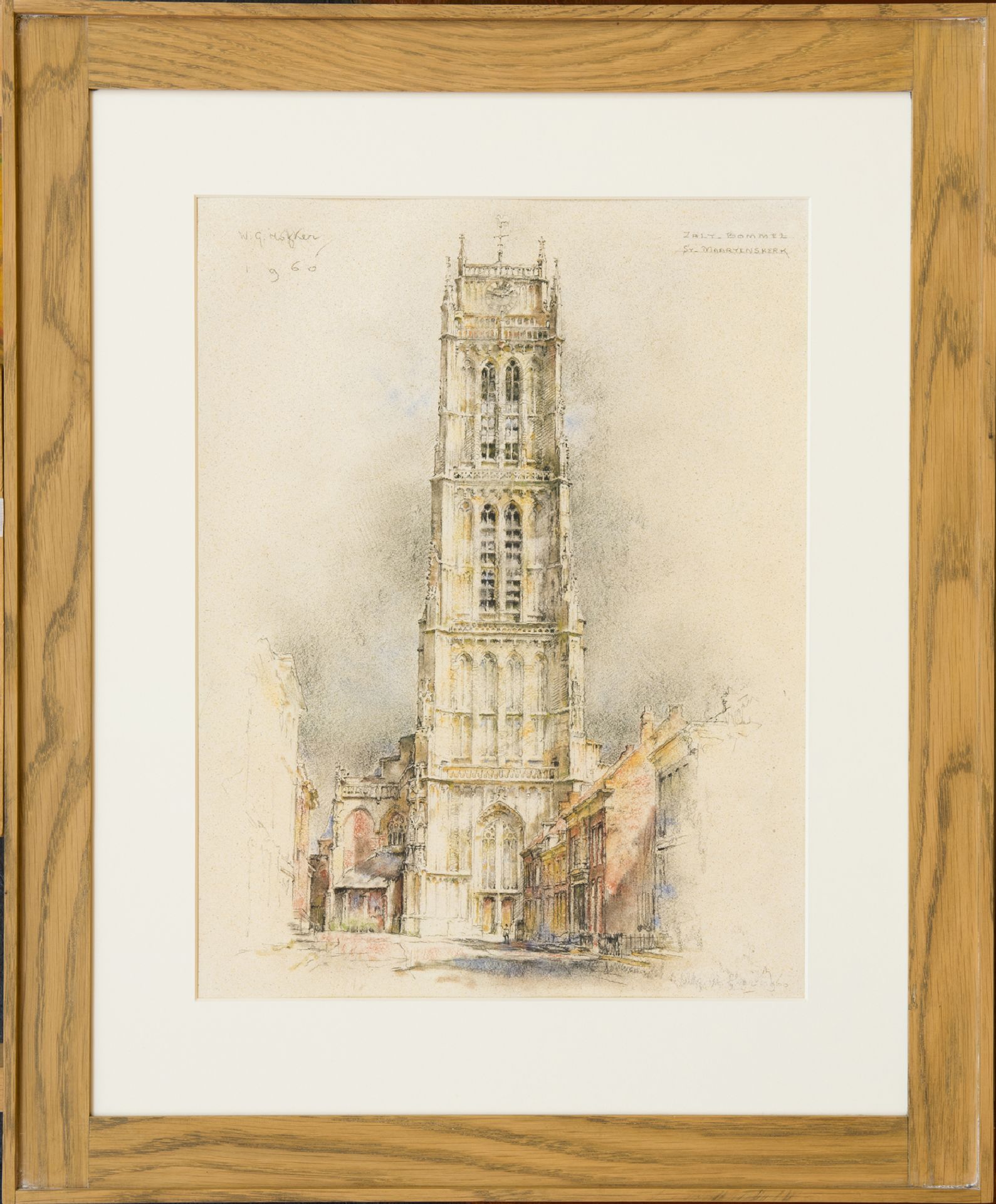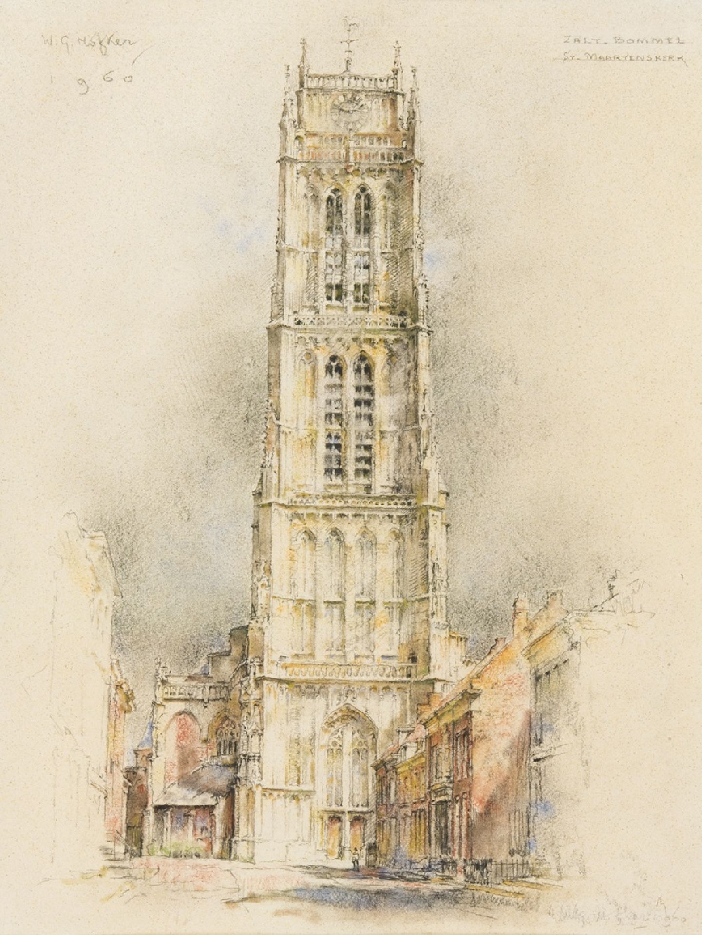 Willem Hofker kunstwerk • aquarel • tekening • voorheen te koop De Sint-Maartenskerk, Zaltbommel