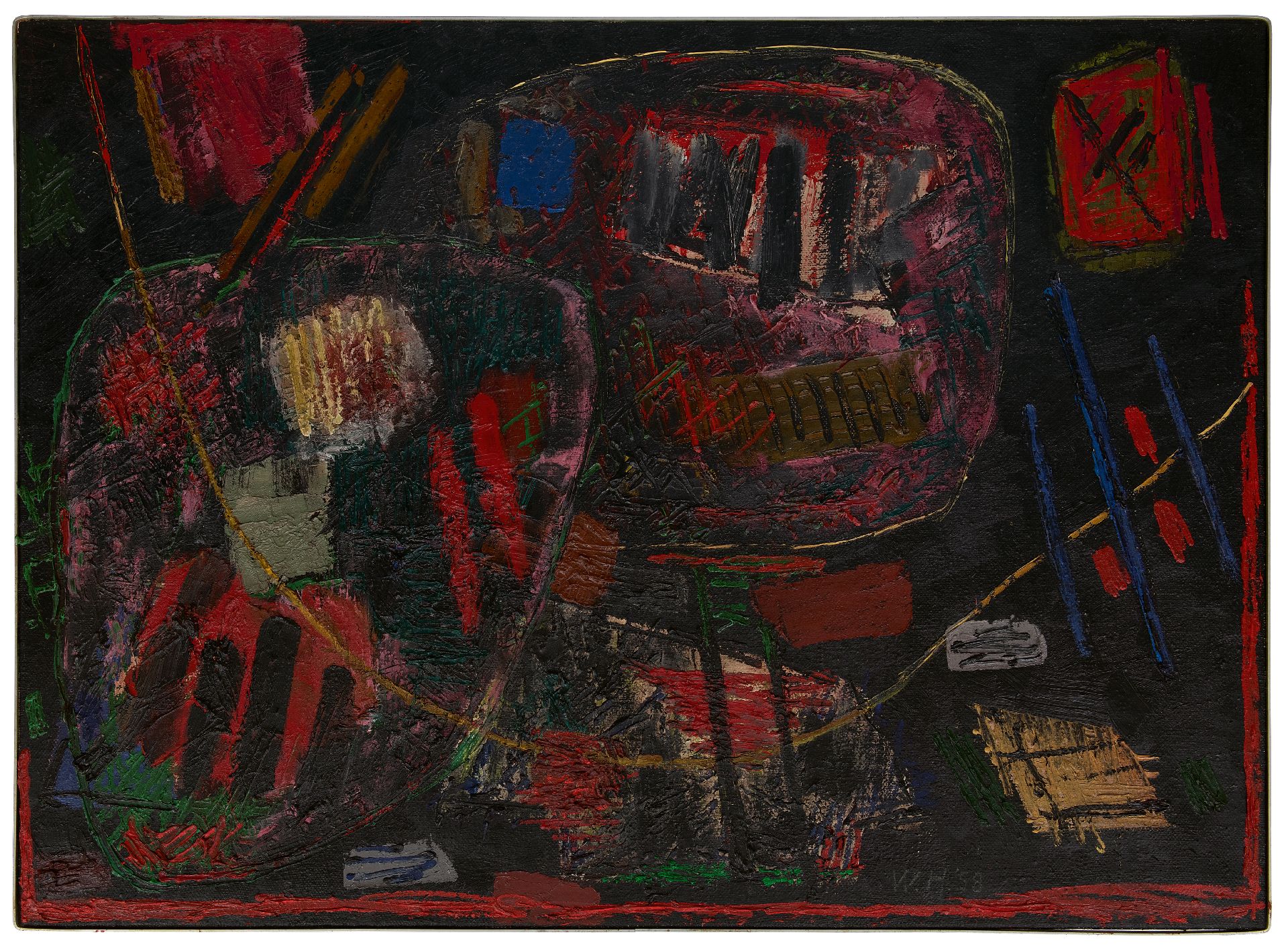 olieverf op jute 95,1 x 130,0 cm, gesigneerd rechtsonder met initialen en gedateerd '58