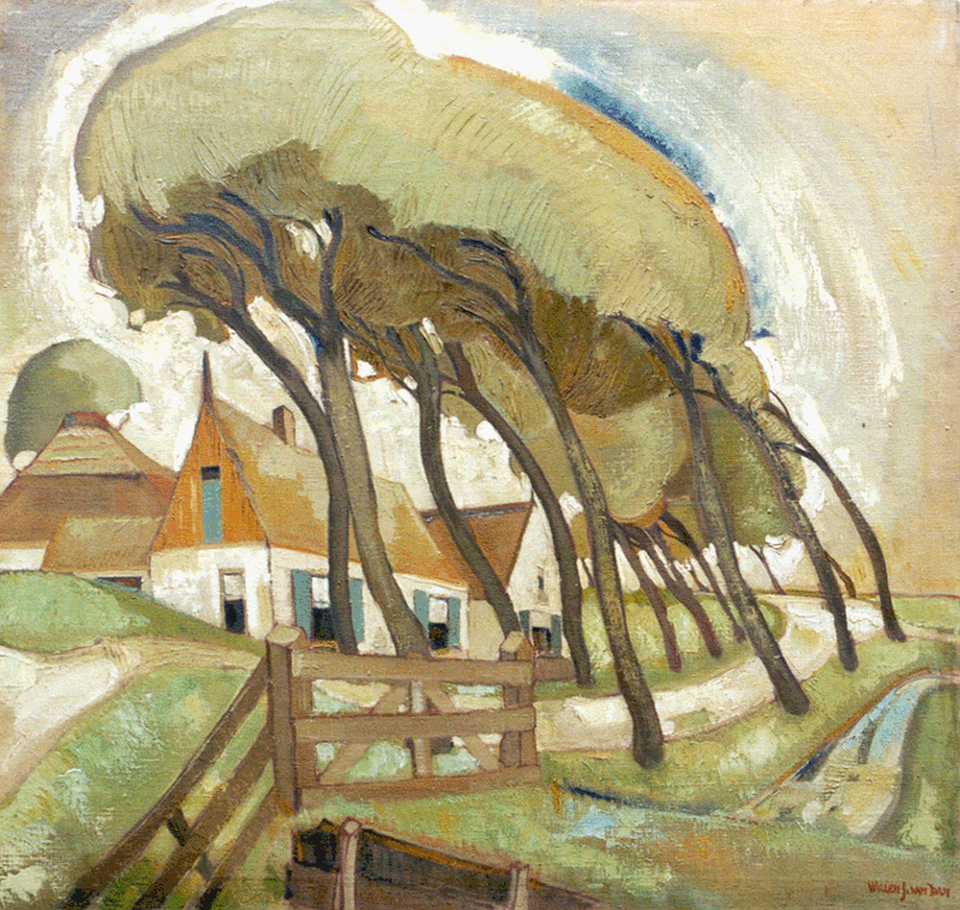 Willem Jan van Dam kunstwerk • schilderij • voorheen te koop Boerderij met bomenrij