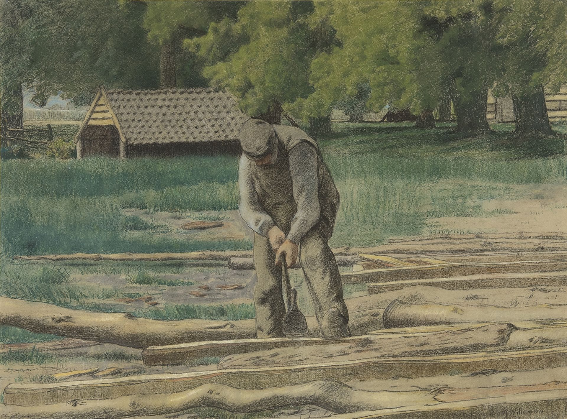 Willem Jan Willemsen kunstwerk • aquarel • tekening • voorheen te koop Houthakker in Park Sonsbeek, Arnhem