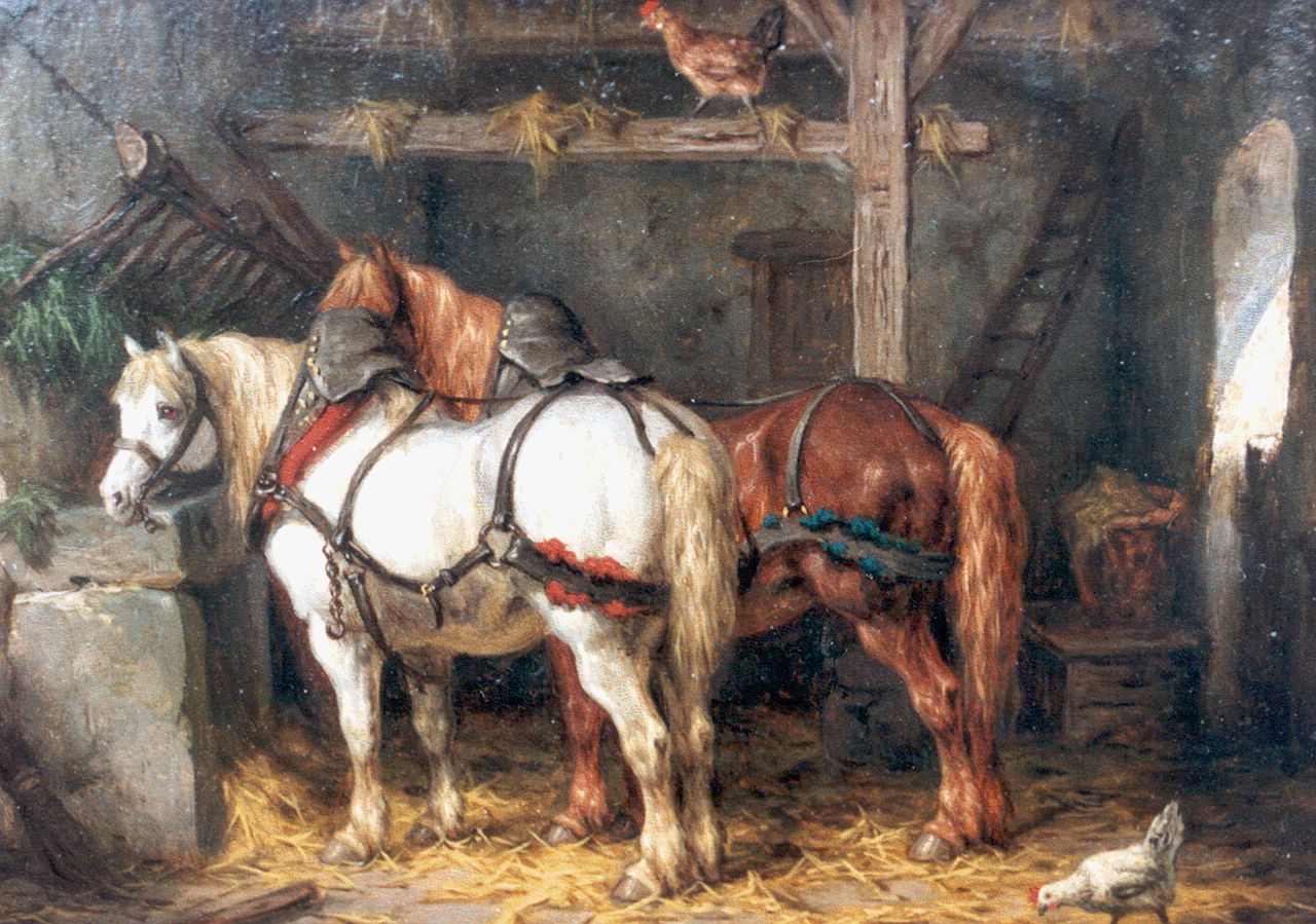 Willem Johan Boogaard kunstwerk • schilderij • voorheen te koop Paarden in een stal