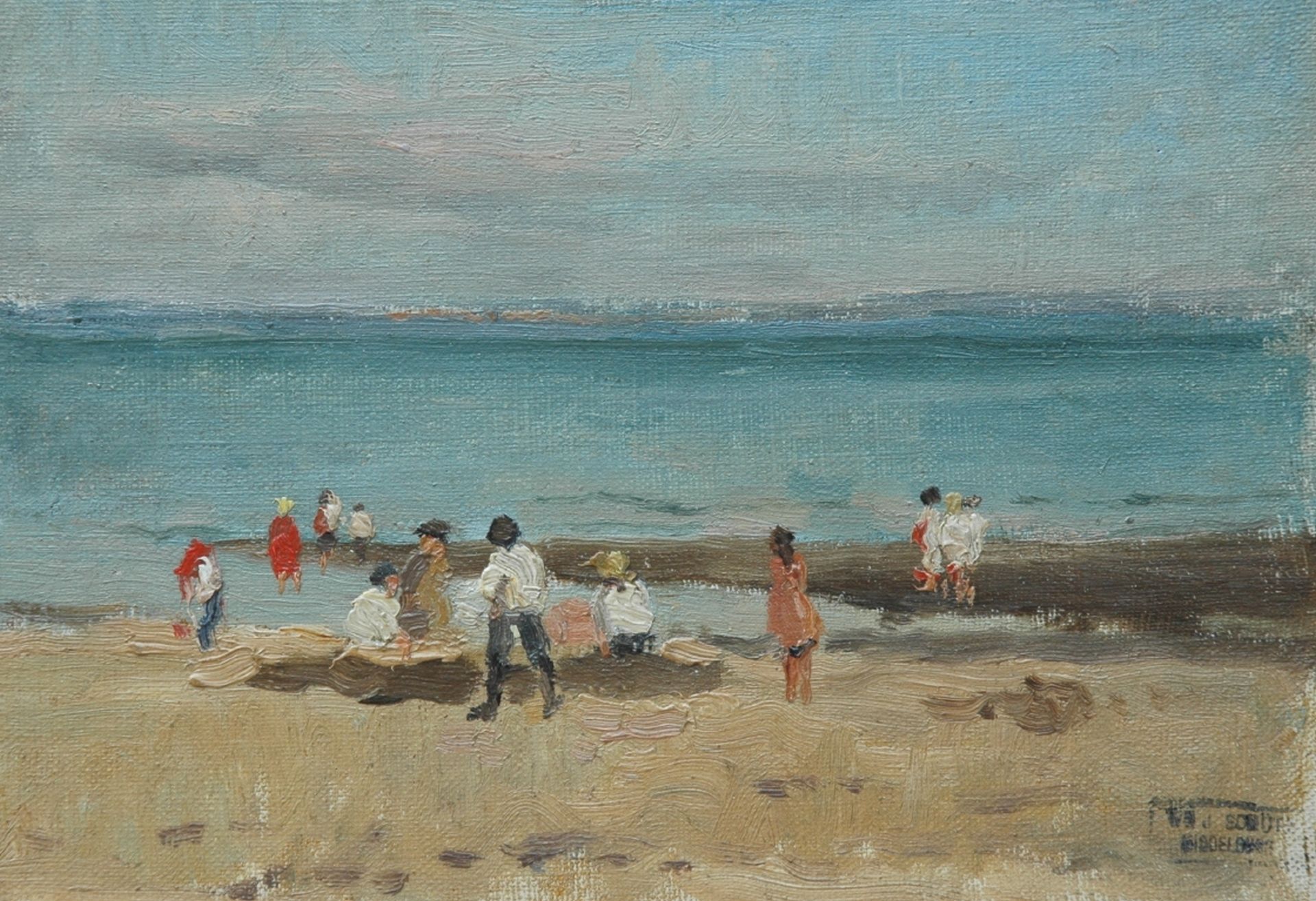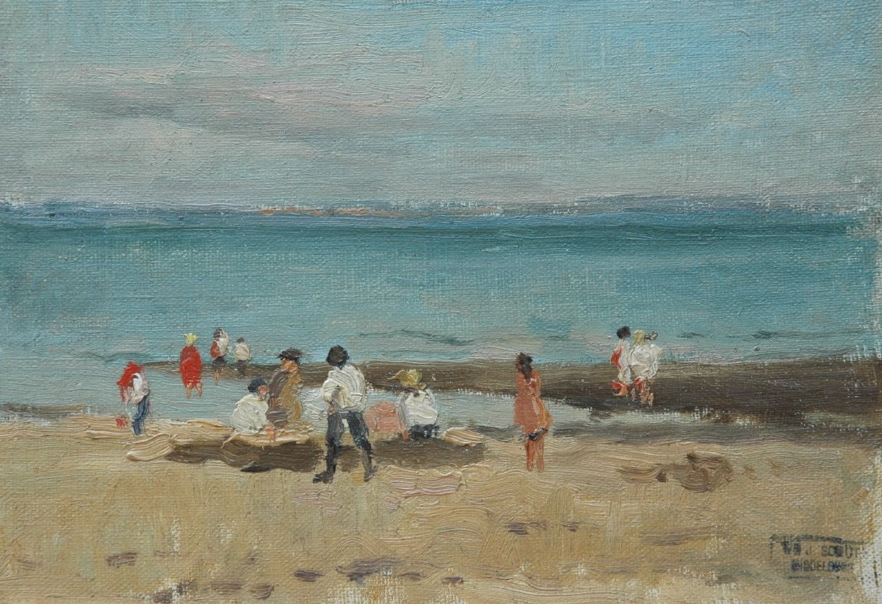 Willem Johannes Schütz kunstwerk • schilderij • voorheen te koop Spelende kinderen op het strand