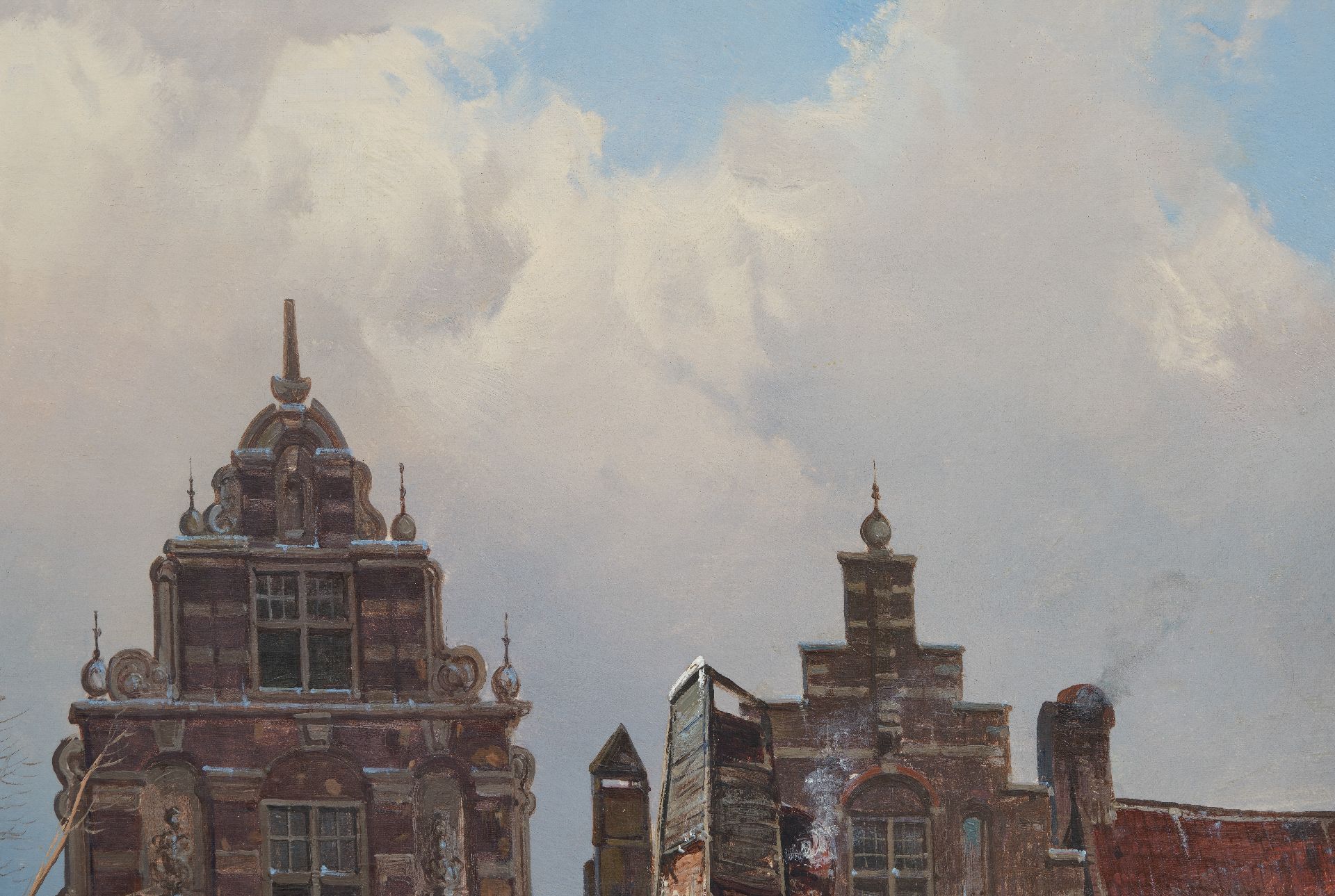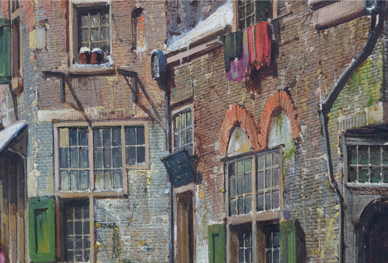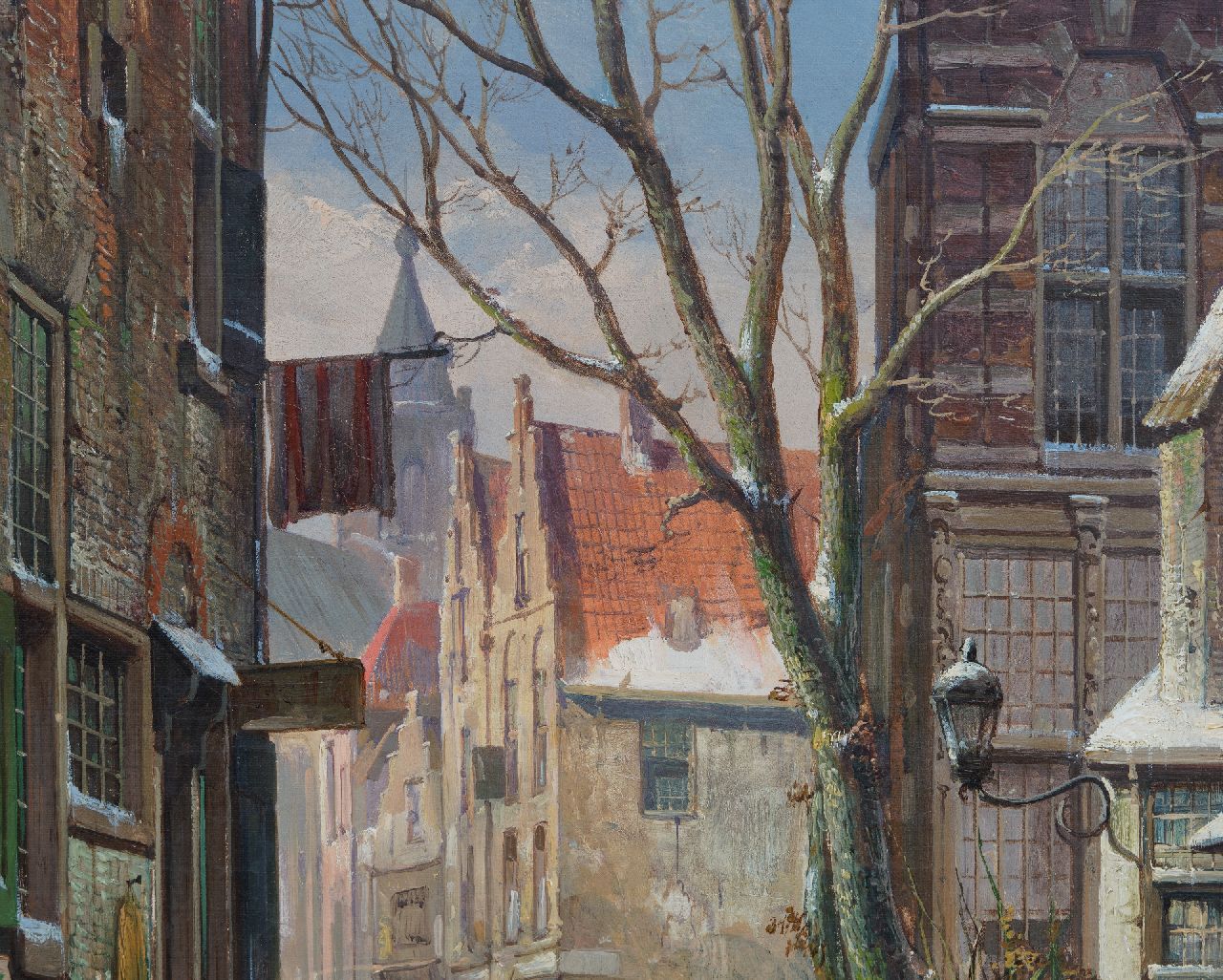 Willem Koekkoek kunstwerk • schilderij • te koop Bedrijvig straatje in de sneeuw