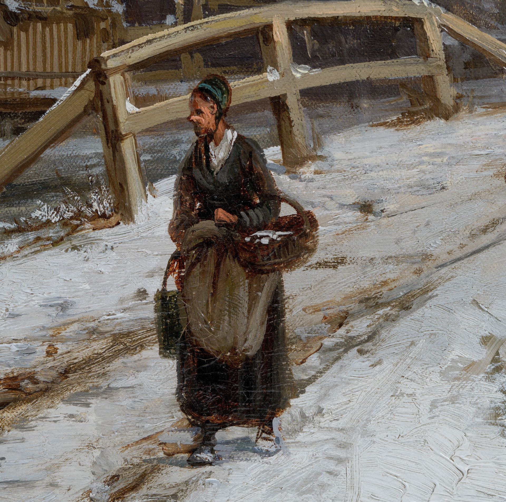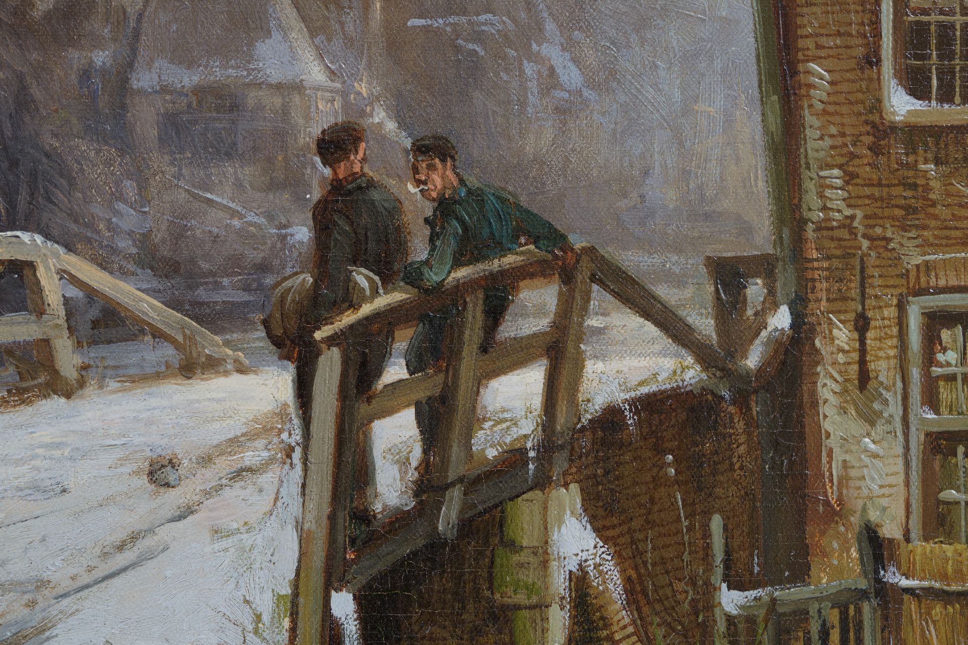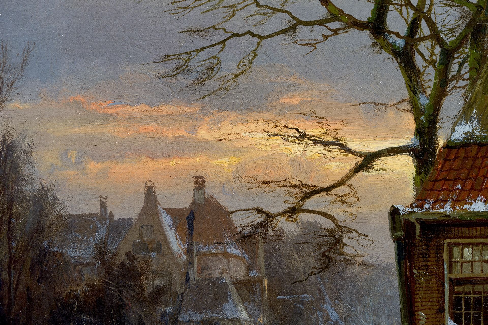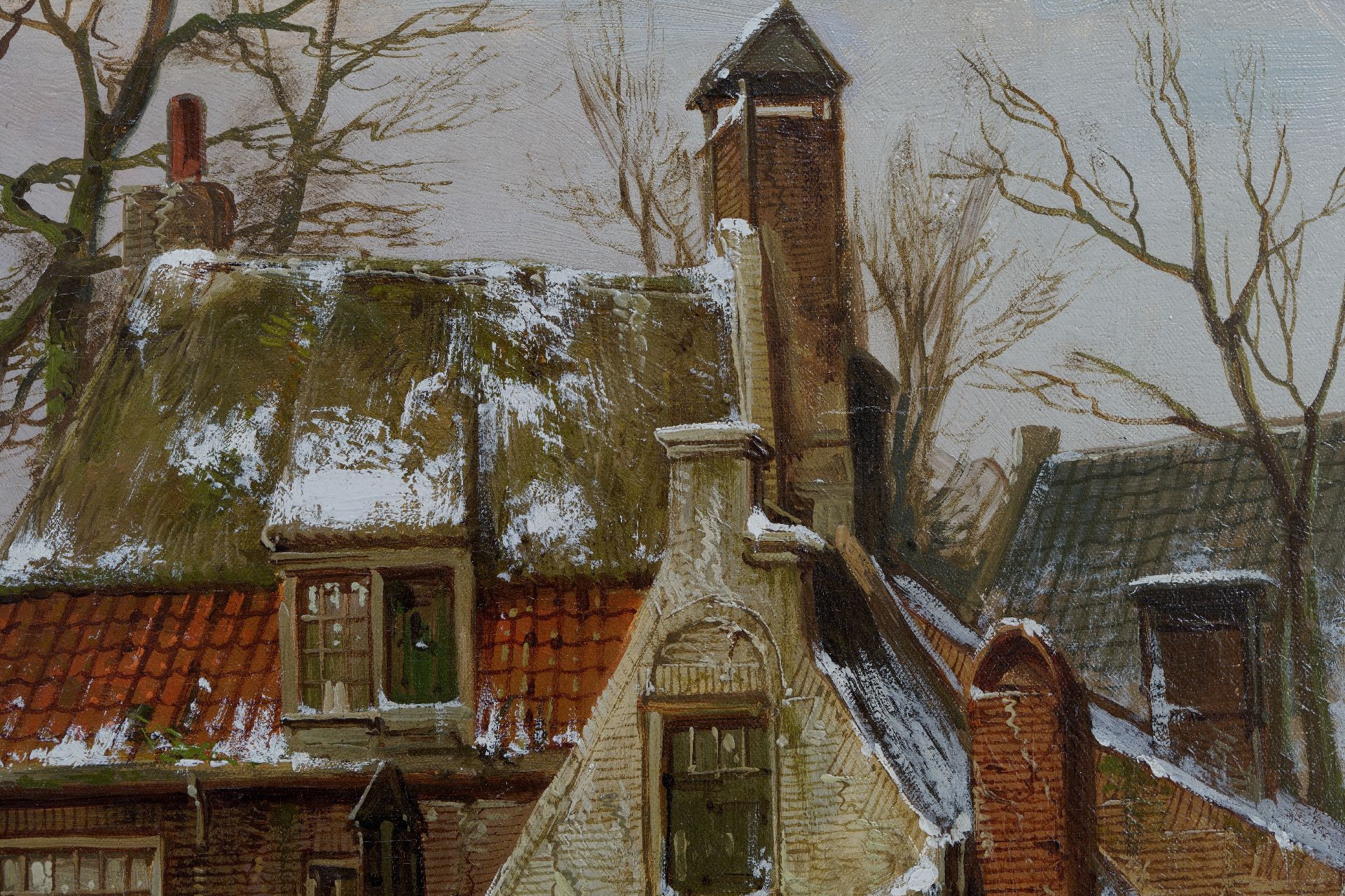 Willem Koekkoek kunstwerk • schilderij • te koop Besneeuwd Hollands grachtje