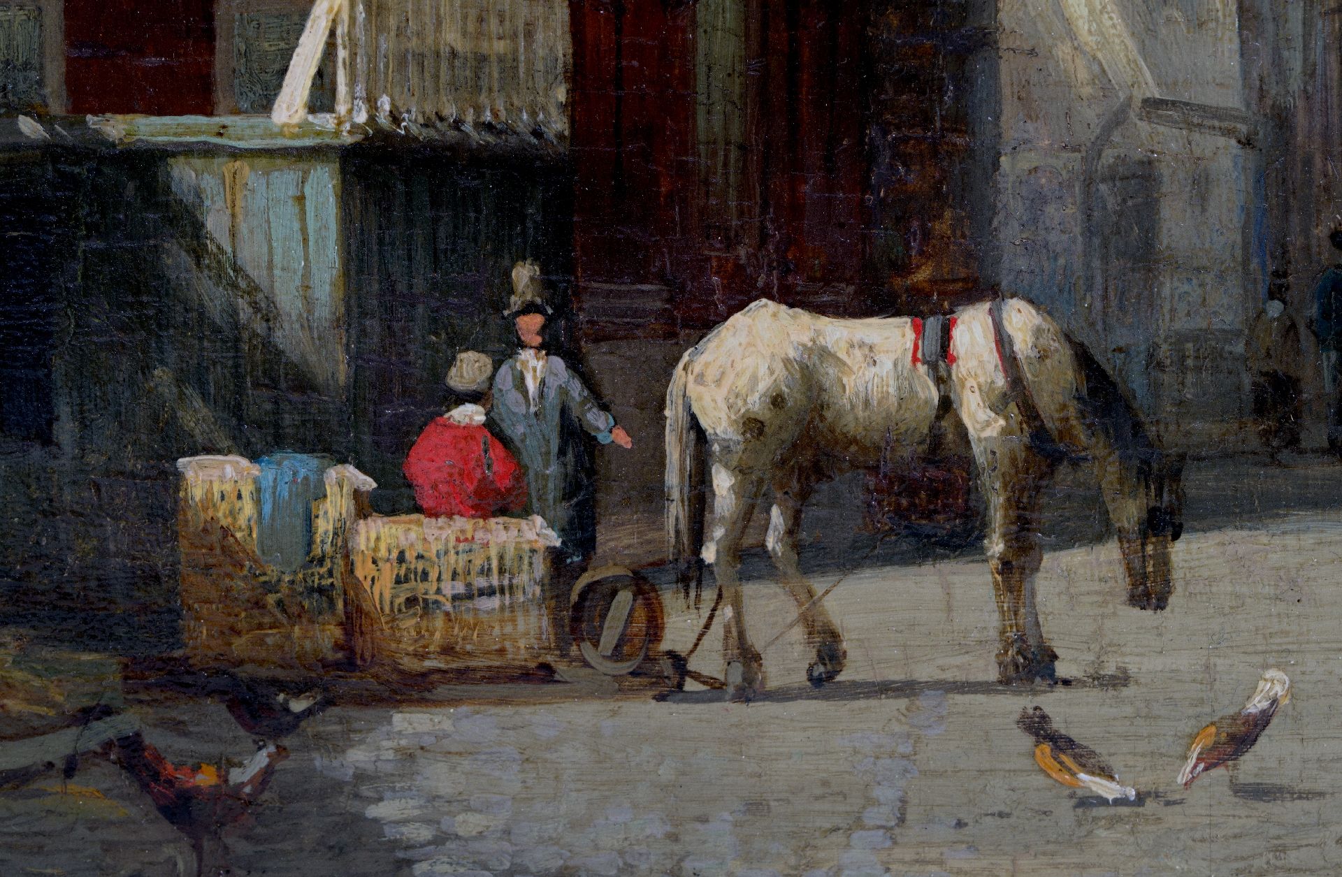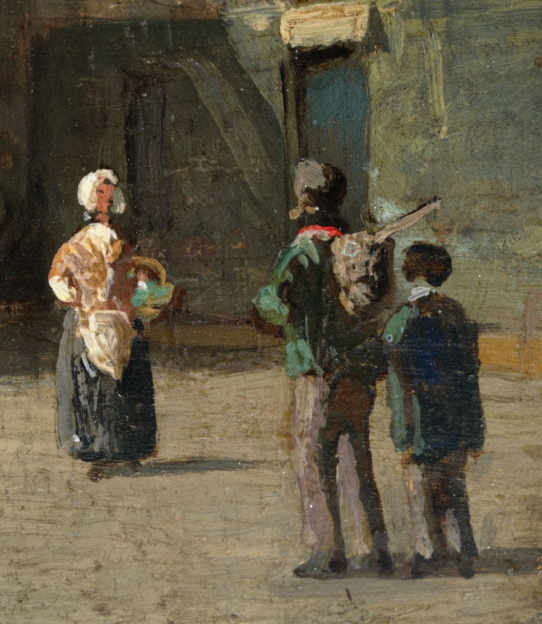 Willem Koekkoek | Zonnig dorpsstraatje met figuren, olieverf op paneel, 28,7 x 35,7 cm, gesigneerd r.o. en gedateerd 1861