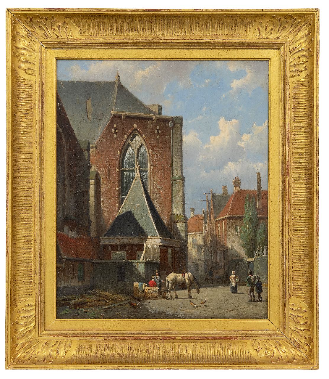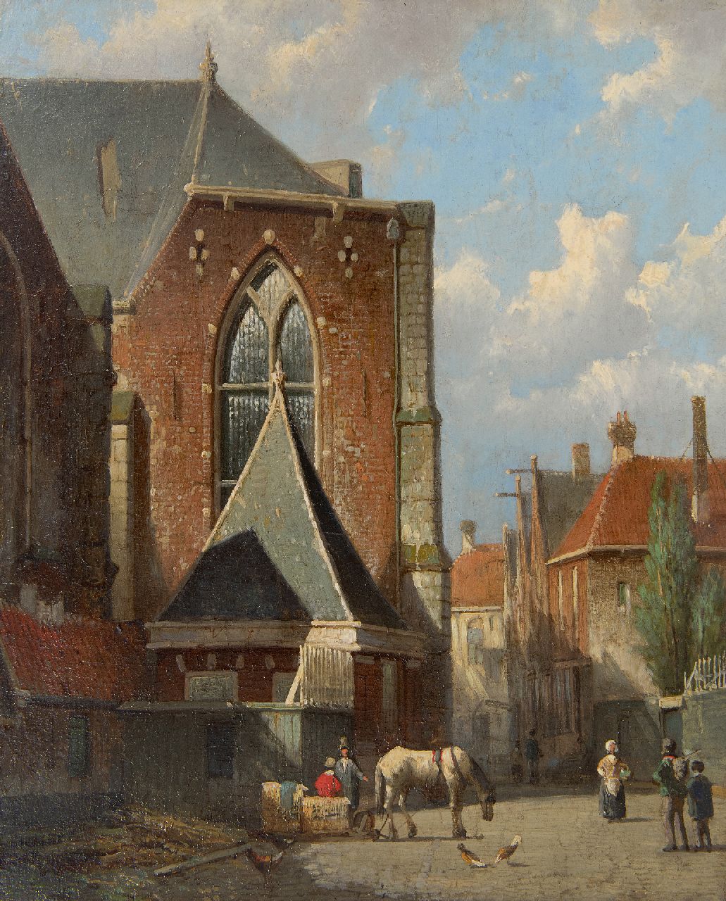 Willem Koekkoek | Straatje achter de kerk, olieverf op paneel, 38,3 x 29,5 cm, gesigneerd l.o.