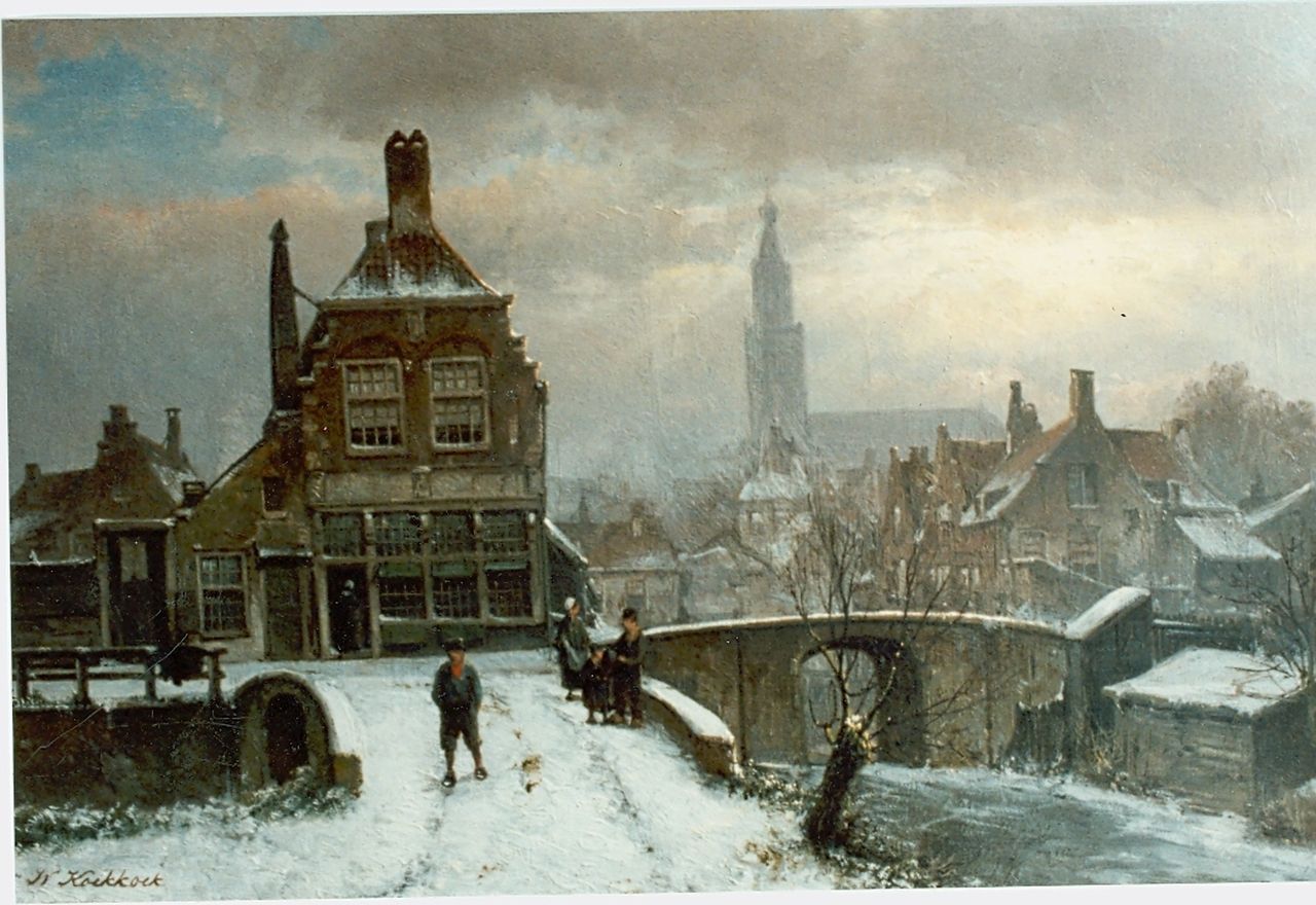 Willem Koekkoek kunstwerk • schilderij • voorheen te koop Gezicht op winterse dorpsgracht