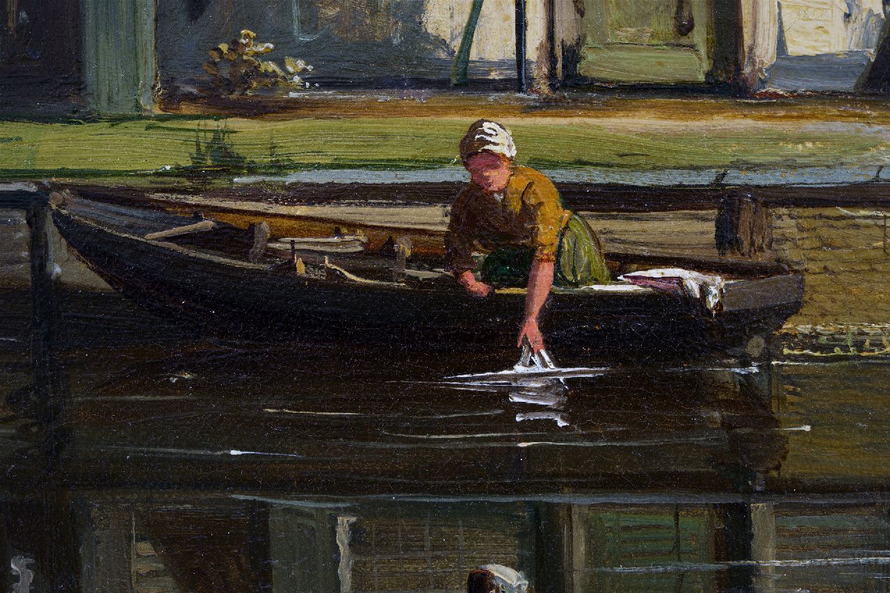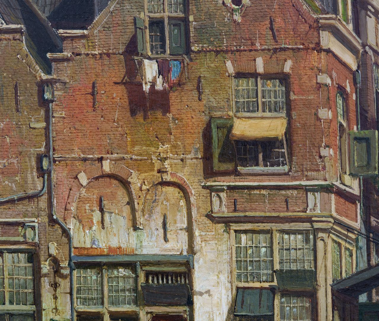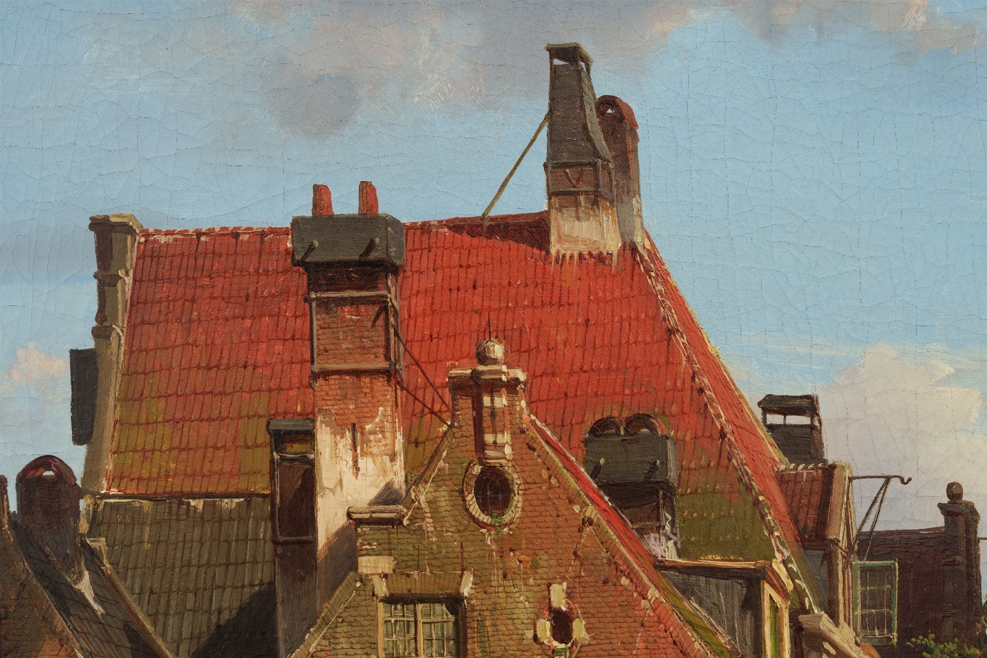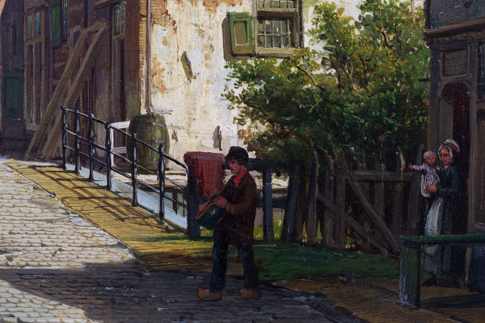 Willem Koekkoek kunstwerk • schilderij • voorheen te koop Hollands stadsgezicht met een brug over het kanaal