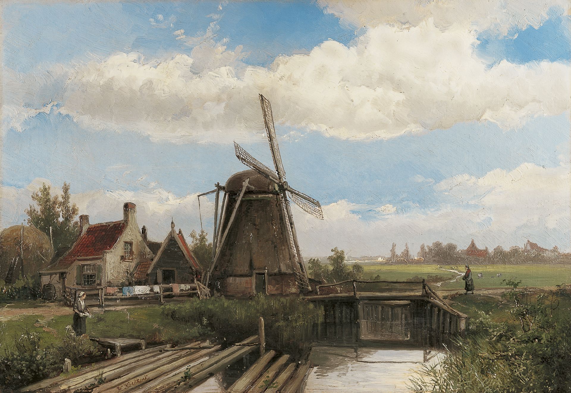 Willem Koekkoek kunstwerk • schilderij • voorheen te koop Poldermolen in zomers landschap