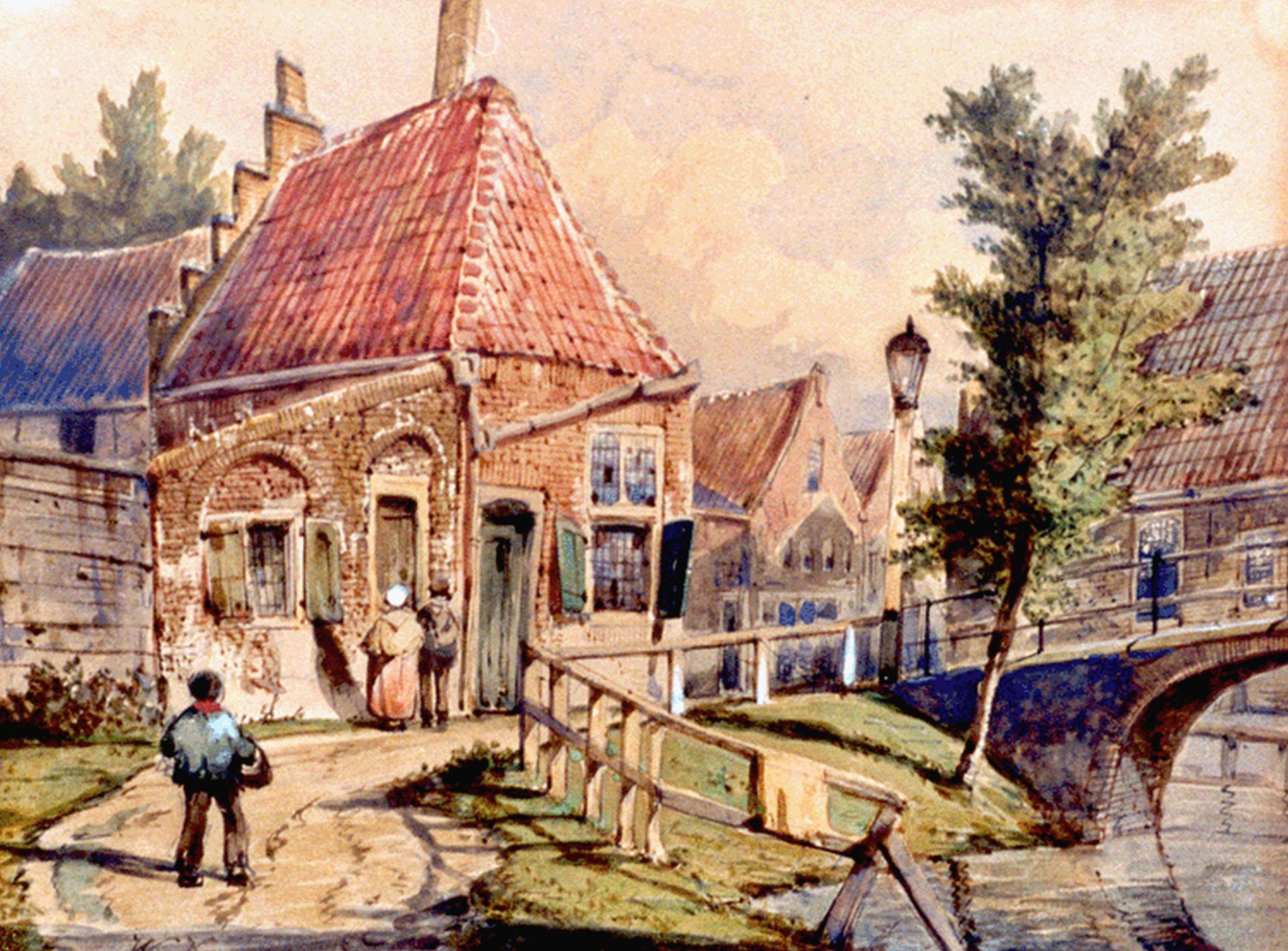 Willem Koekkoek kunstwerk • aquarel • tekening • voorheen te koop Staaleversgracht, Enkhuizen