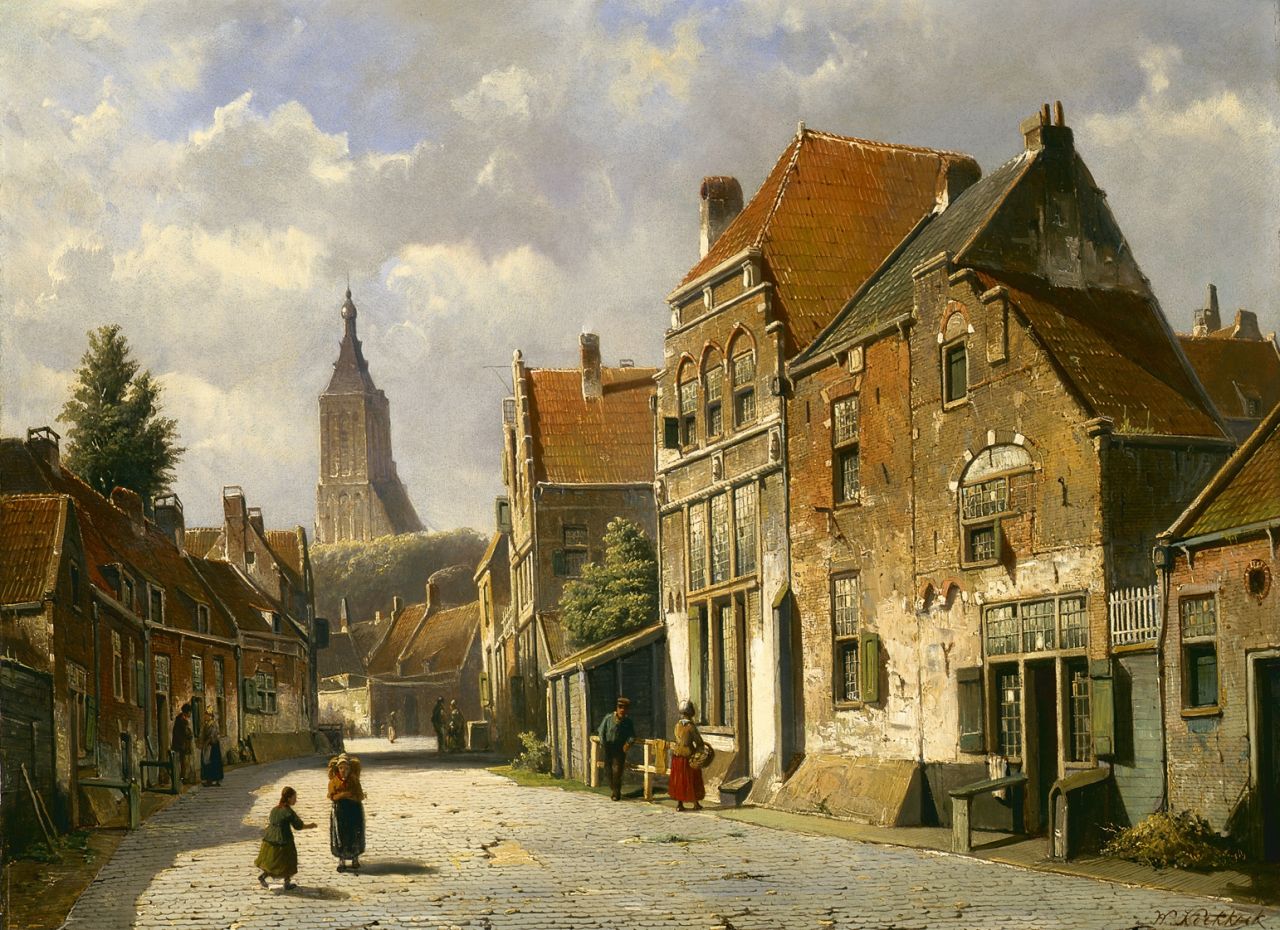 Willem Koekkoek kunstwerk • schilderij • voorheen te koop Zomers straatgezicht