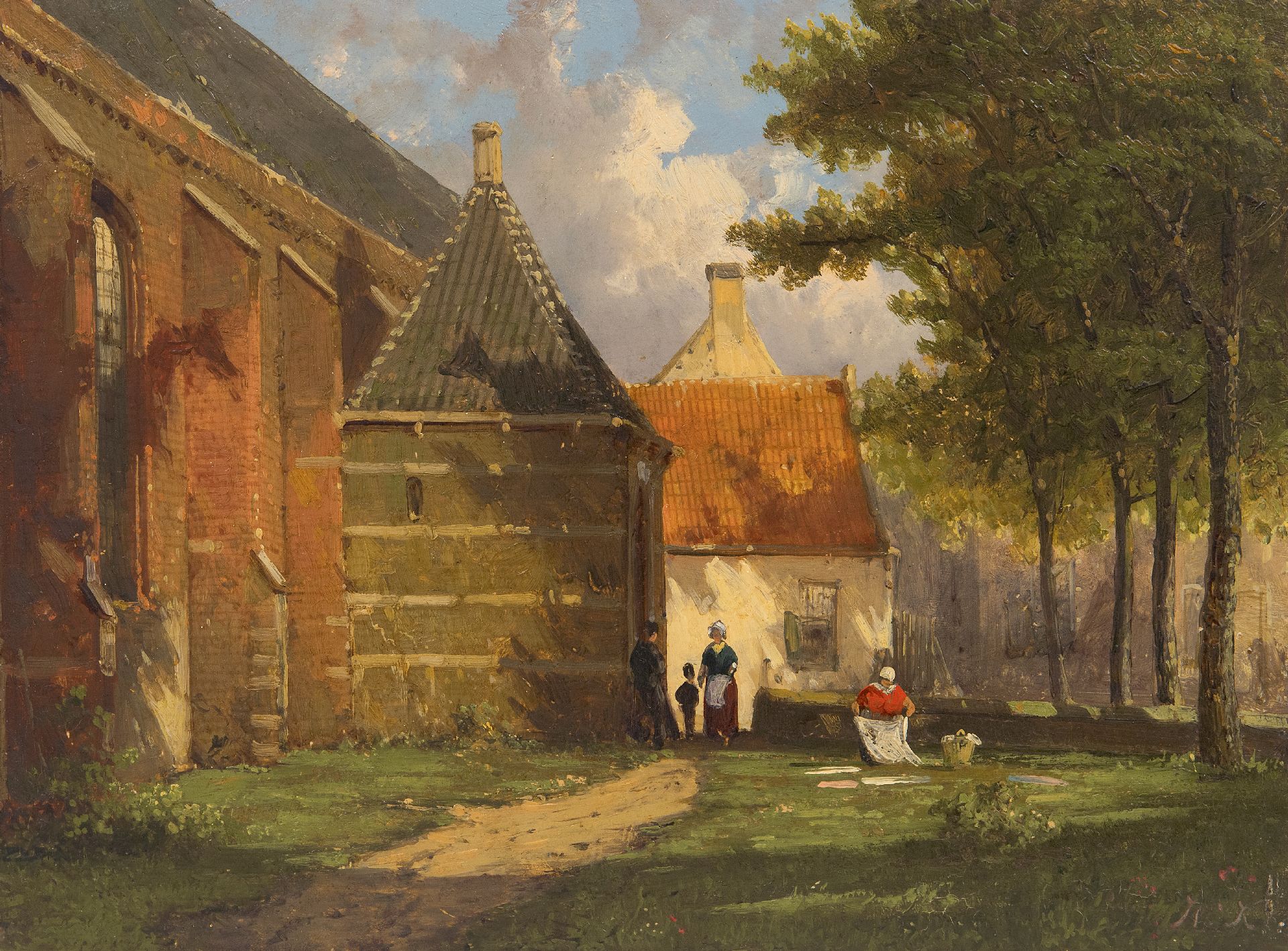 Willem Koekkoek kunstwerk • schilderij • te koop Zonnig gezicht op de Zuiderkerk in Enkhuizen