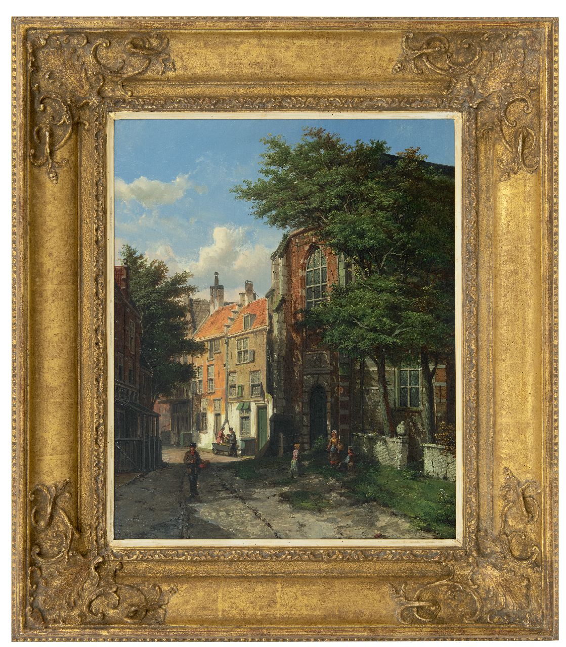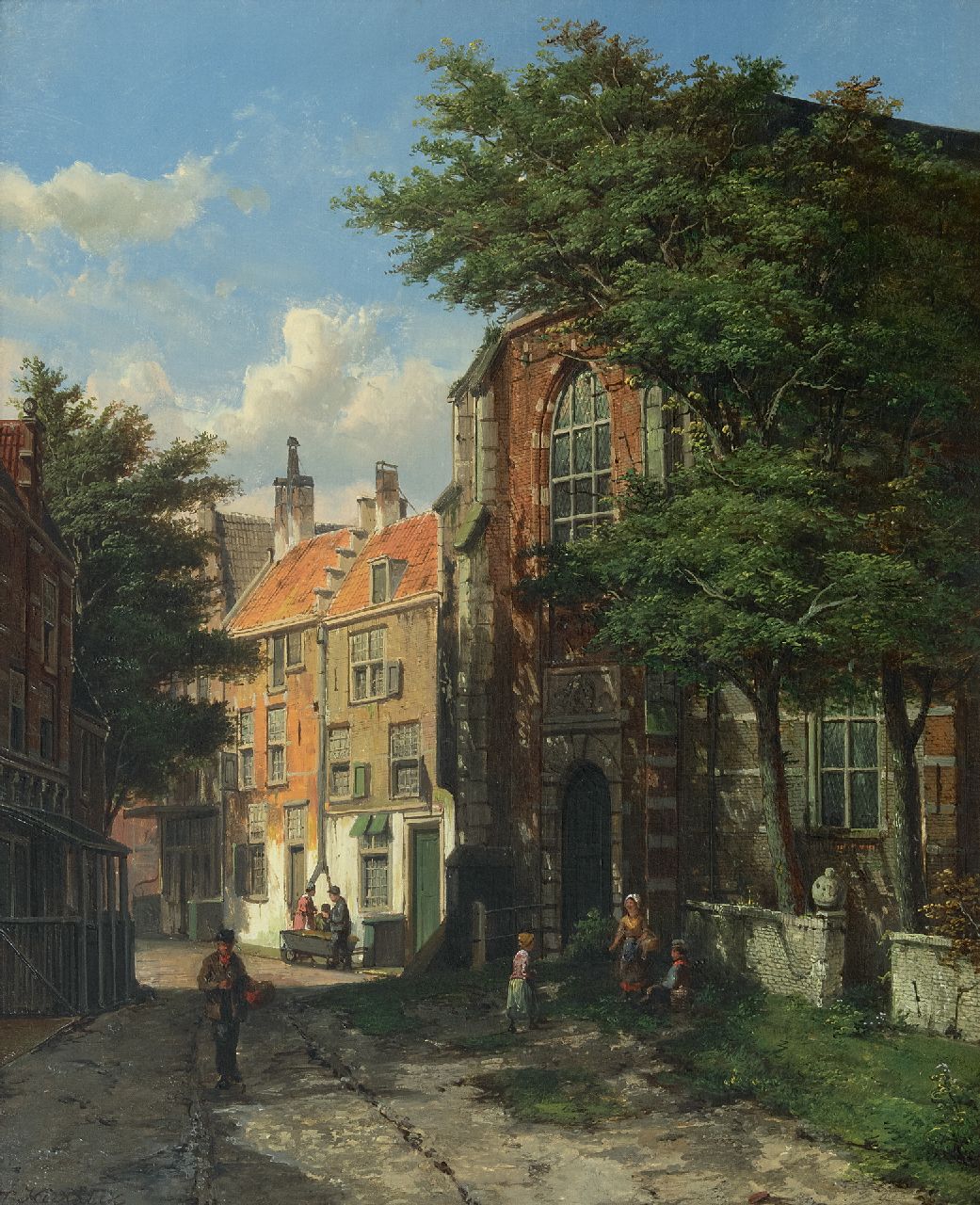 Willem Koekkoek kunstwerk • schilderij • voorheen te koop Zonnig straatje achter de kerk te Asperen