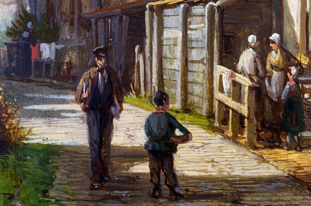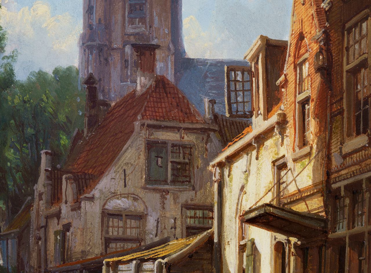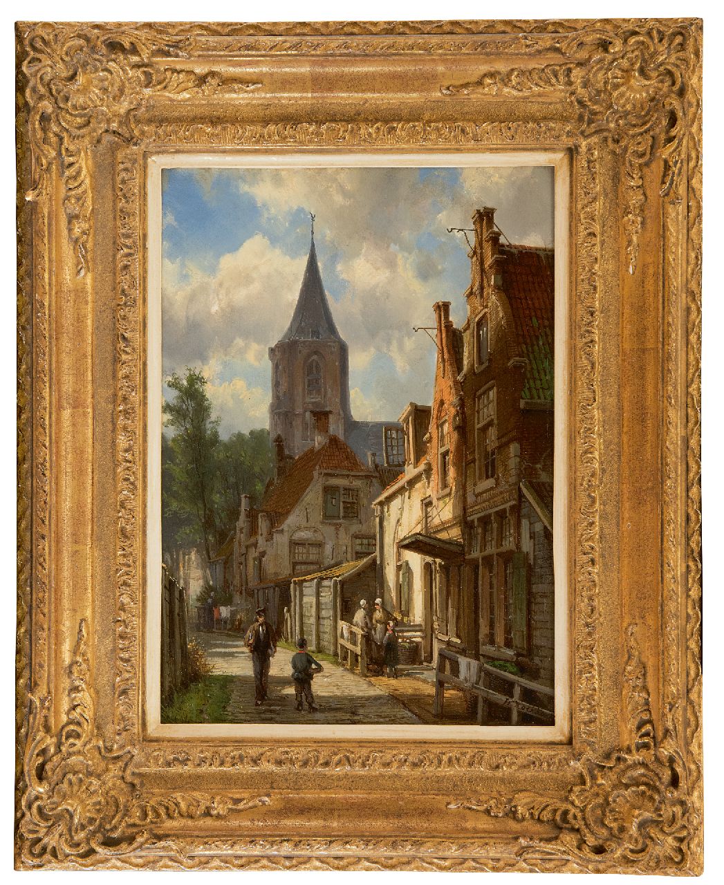 Willem Koekkoek kunstwerk • schilderij • voorheen te koop Zonnig straatje met figuren