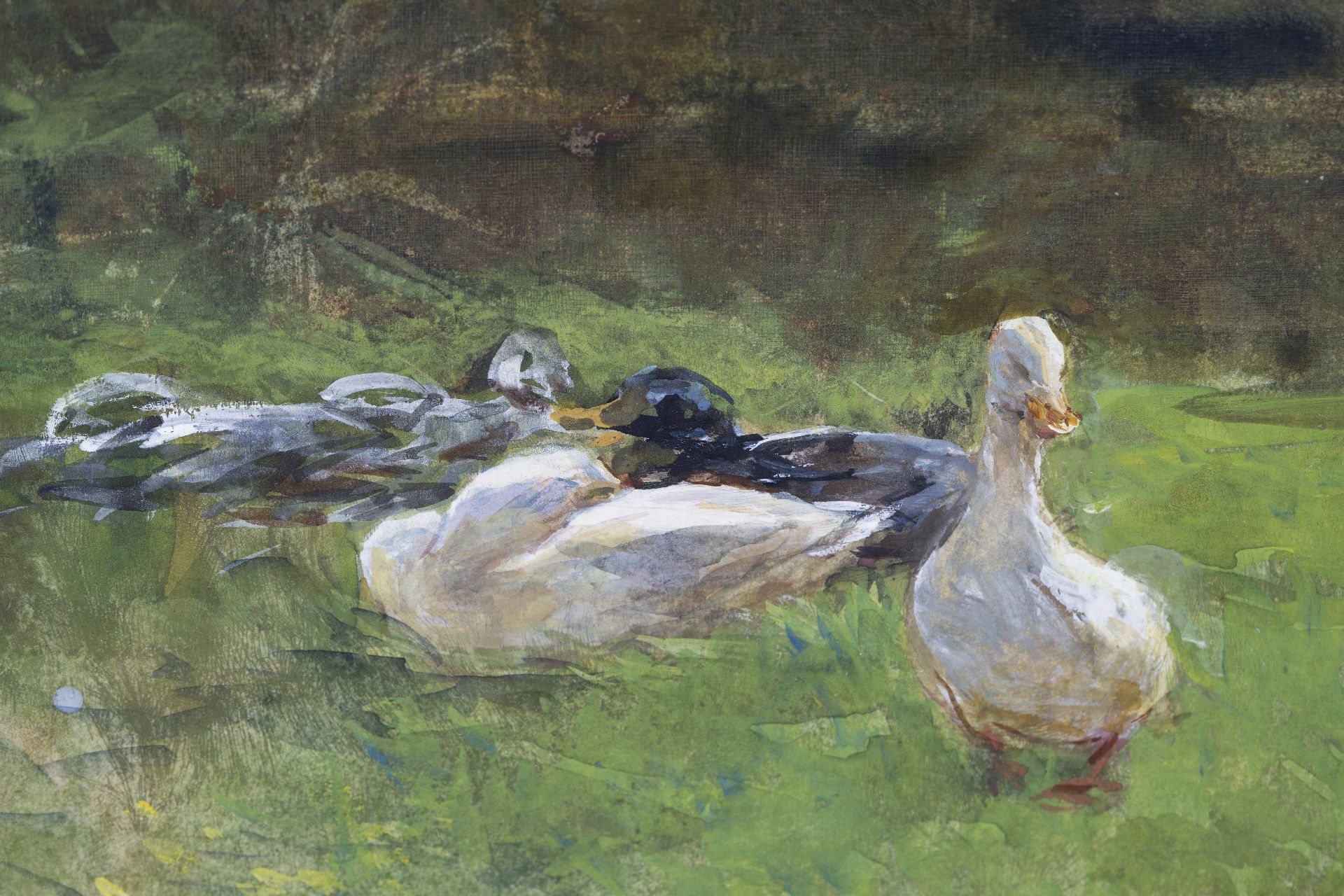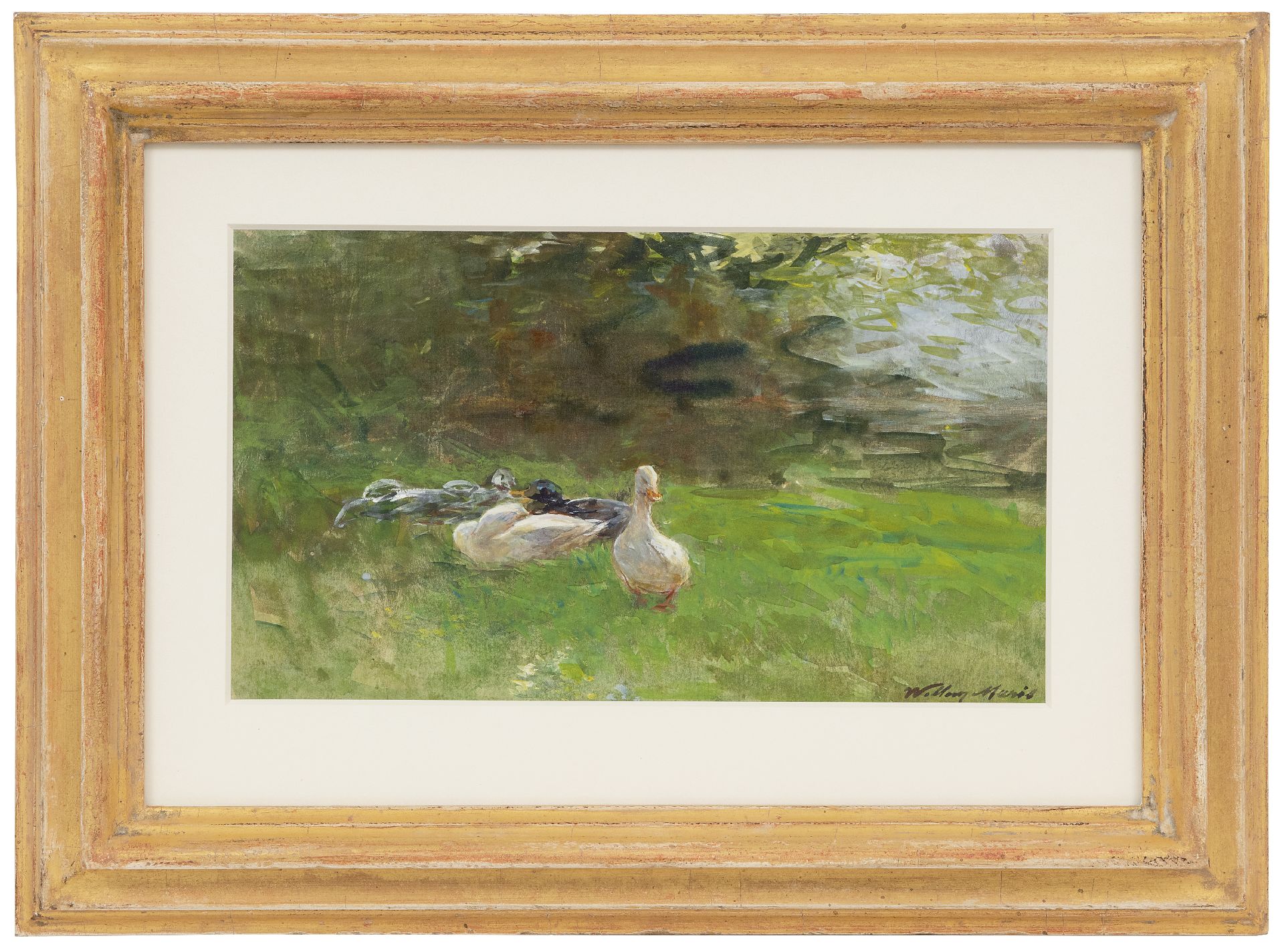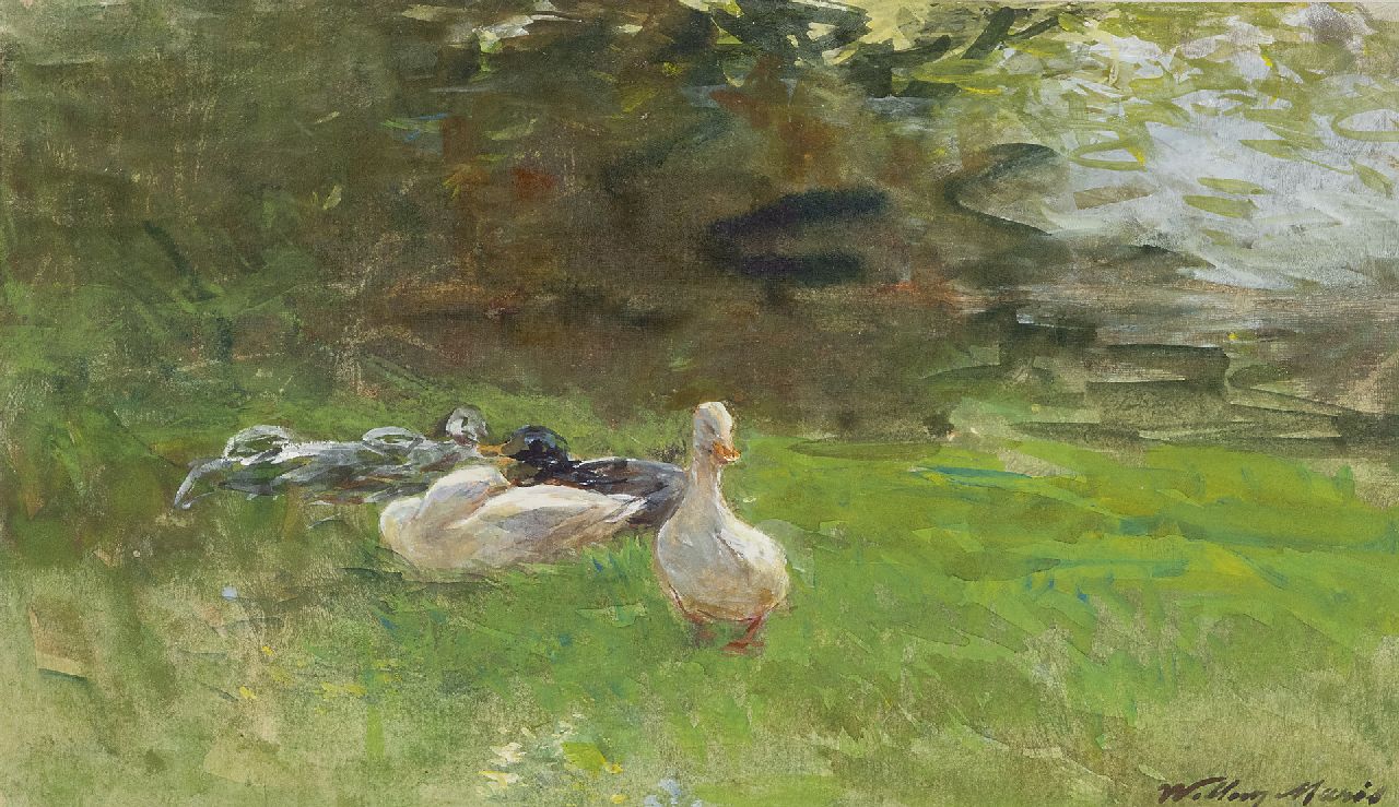 Willem Maris kunstwerk • aquarel • tekening • te koop Eenden in het gras