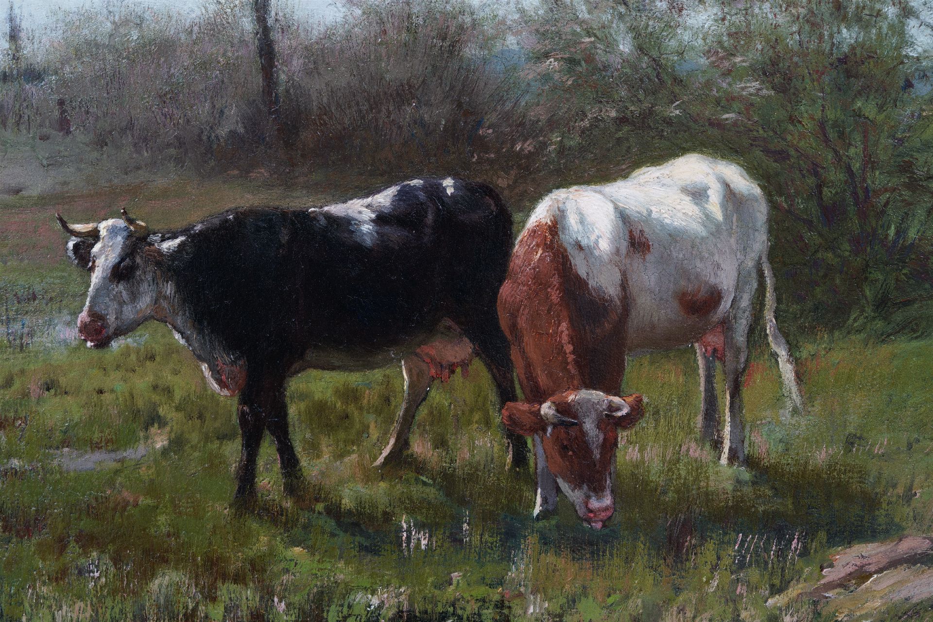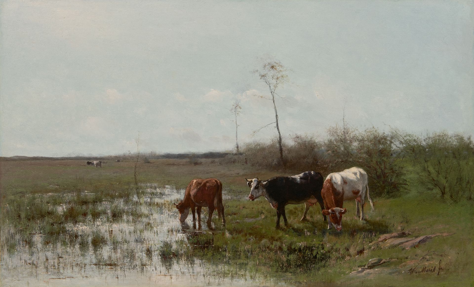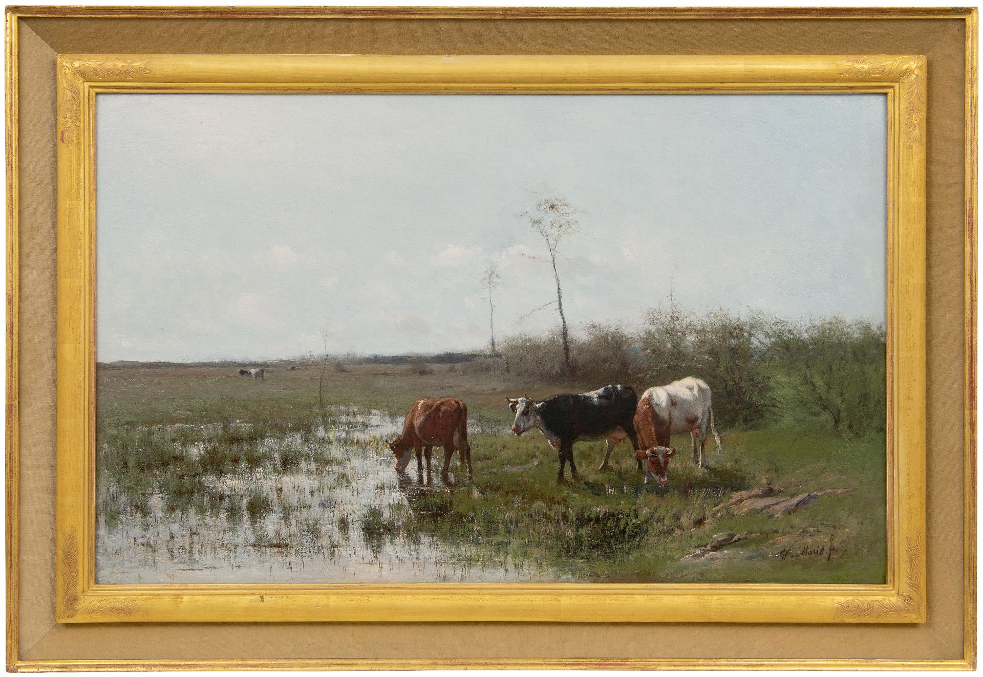 Willem Maris kunstwerk • schilderij • voorheen te koop Grazende koeien aan het water
